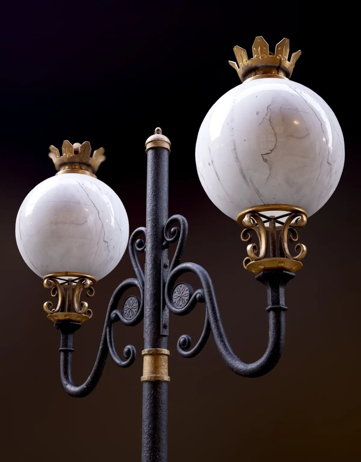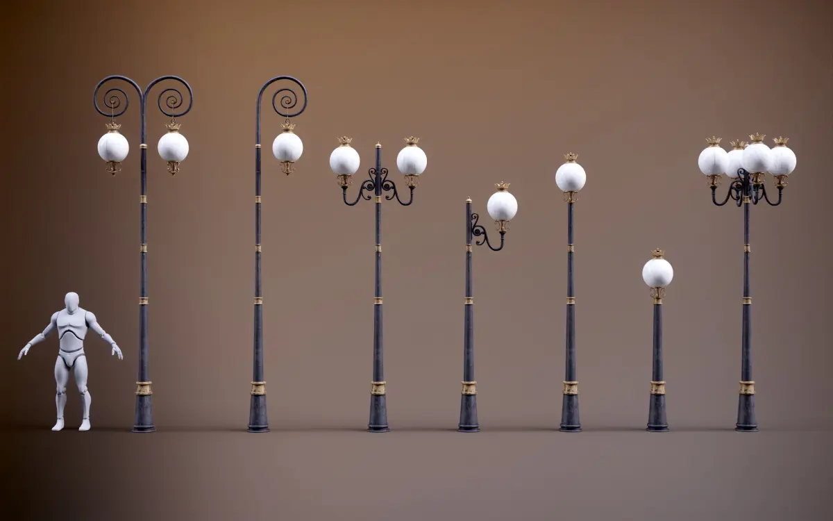 This Modular Street Sphere Lamp can be used in games or some real-time scenes in victorian, retro or modern style. This is lowpoly, game-ready asset. 2 Materials.The Lantern, rings, all parts of street pole and forged brackets can be used separately.All lights together: 216 040 polygons.One light has from 13486 to 66408 polygons.