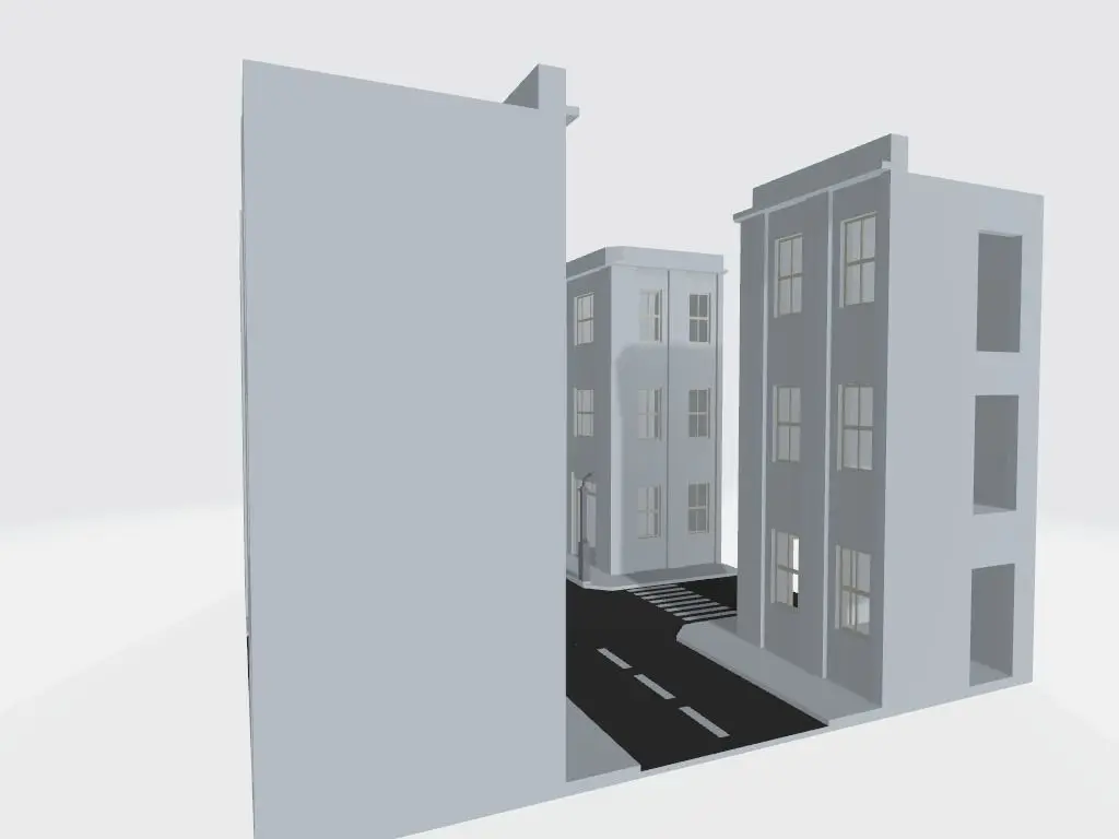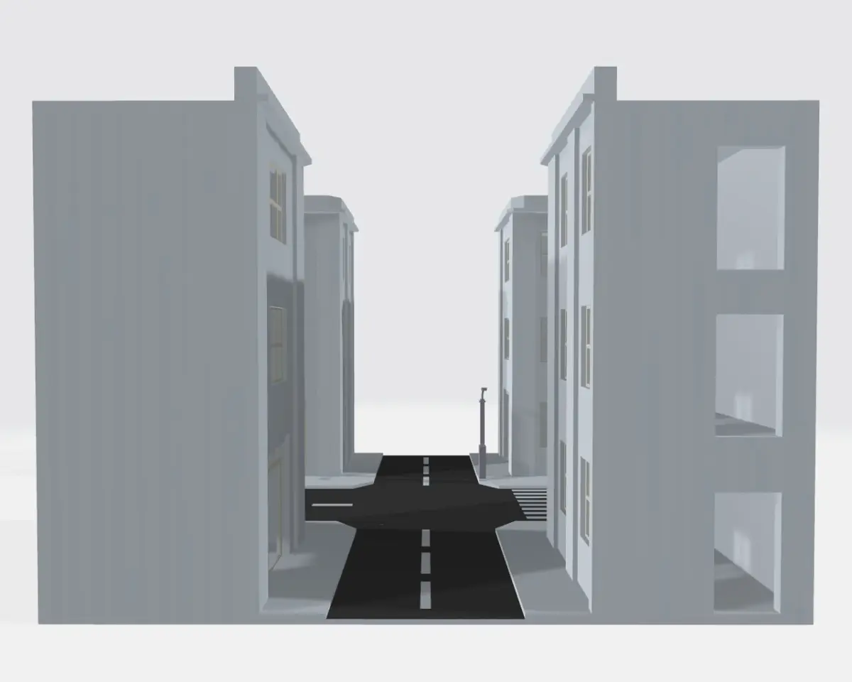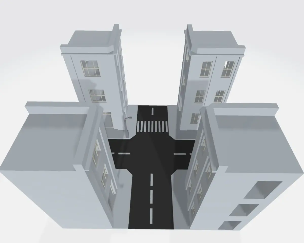 This model represents a simple mid-20th century street with pavement, lamp and pedestrian crosssing.The life size would be 14 x 14 x 10 m.; the polycount is 4690.Can be efficiently used as a modular element by turning it at straight angles and 'sticking' together.