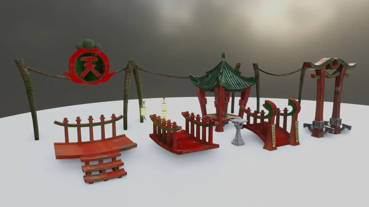 This is a modular stylized Asian Bridge Low Poly for your Game Engine.