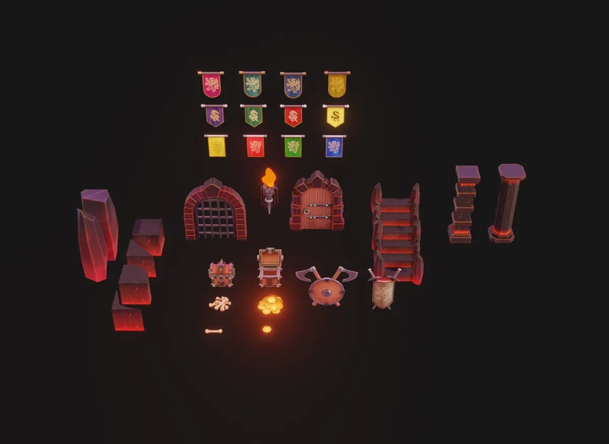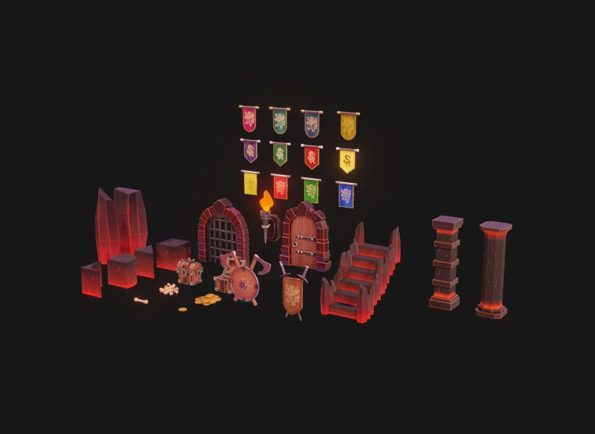 Modular Stylized Dungeon Kit 3D Model pack provides high-quality visual assets for building modular dungeons in any game engine or 3D software.