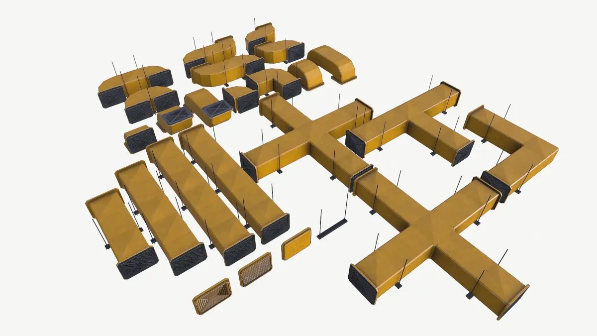 Included ZIP & RAR file formats: -mb -fbx -dae -obj -TGA Low poly: 14064 tris (25 models) TEXTURES: Ventilation_yellow_AOVentilation_yellow_DMVentilation_yellow_HMVentilation_yellow_HMVentilation_yellow_NMVentilation_yellow_RM All models have only one set of textures (4096x4096).Your game will be beautiful and optimized at the same time! 25 models will be available to you. You can create the configuration that is right for you! Fans can be animated. The scene was modeled using Autodesk Maya 2018. All objects are grouped and named correct for easy selection and control. You don't need a special plugin to open the scene. The entire scene was simulated in real scale. This model is scaled for the real world. Measurement units: centimeters. All materials are named correctly. The model includes a ready-to-play texture. It is very easy to work with him.