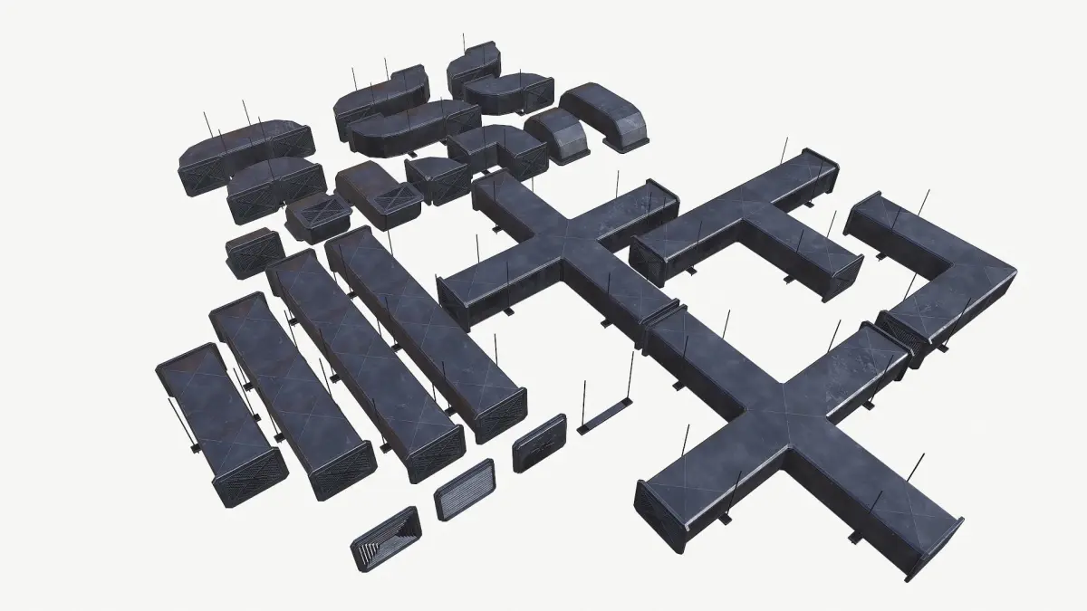 Included ZIP & RAR file formats: -mb -fbx -dae -obj -TGA Low poly: 14064 tris (25 models) TEXTURES: Ventilation_metal_AO_02Ventilation_metal_DM_02Ventilation_metal_HM_02Ventilation_metal_MM_02Ventilation_metal_NM_02Ventilation_metal_RM_02 All models have only one set of textures (4096x4096).Your game will be beautiful and optimized at the same time! 25 models will be available to you. You can create the configuration that is right for you! Fans can be animated. The scene was modeled using Autodesk Maya 2018. All objects are grouped and named correct for easy selection and control. You don't need a special plugin to open the scene. The entire scene was simulated in real scale. This model is scaled for the real world. Measurement units: centimeters. All materials are named correctly. The model includes a ready-to-play texture. It is very easy to work with him.