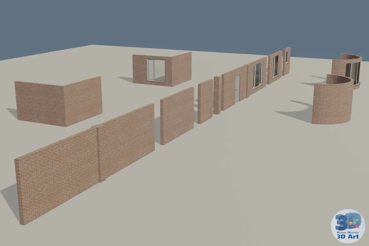 This is set of very simple modular walls. The materials are kept very simple and it should be a quick set up in any 3D software.
