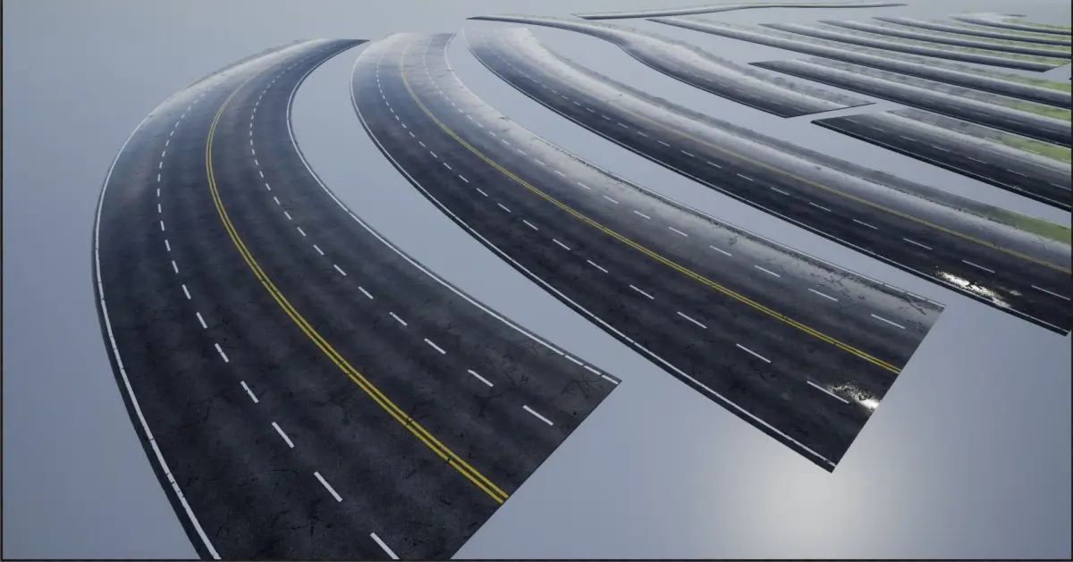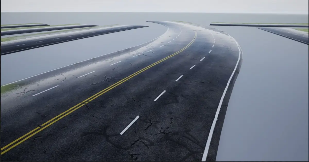 - Four Lane Road Cracked Wet Textures Albedo,Normal,AO,Roughness,displacement,Mask(4096x2048) 4K