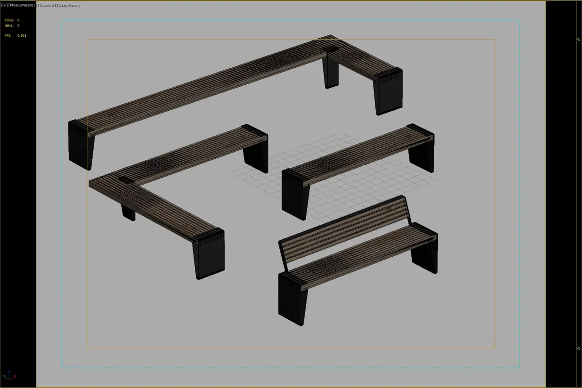 Versatile collection of modular wood and metal benches, perfect for urban parks and public spaces. Designed to offer flexible seating options with a modern aesthetic.