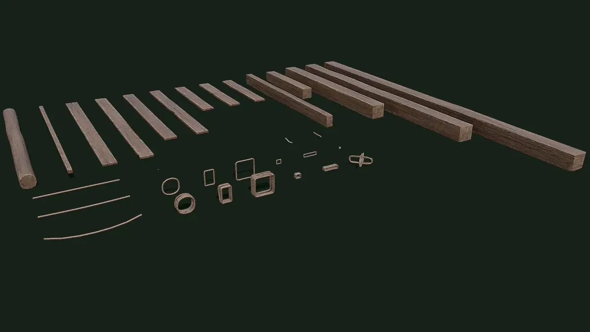 This asset includes a range of wooden pieces, including logs, boards, posts, slats, and ropes, all ready to be assembled according to your imagination.Number of textures: 5Texture dimensions: 1024 PixelPolygon count: 14.2KMinimum polygon count: 12Maximum polygon count: 2.6KNumber of meshes: 32Number of prefabs:7Rigging: NoUV mapping: YesTypes of materials: PBRTextures: 1024 PixelAll models are entered at origin.Real world scale.Clean UVs. Fully unwrapped. No overlaps.