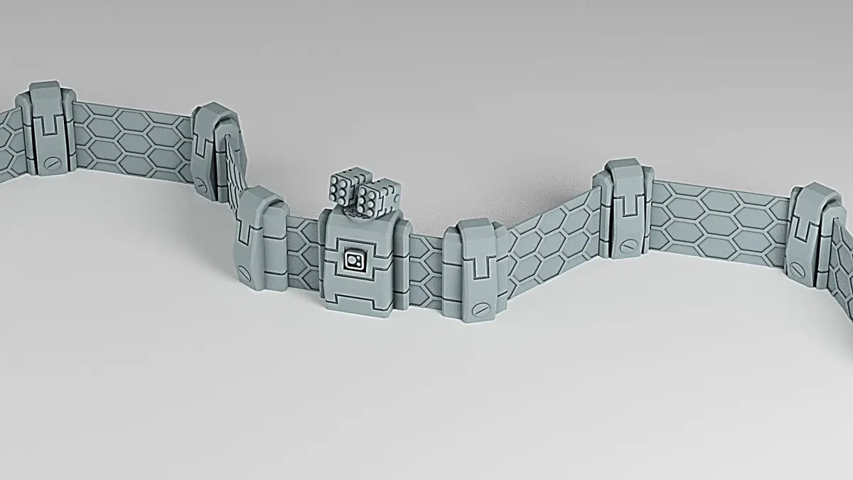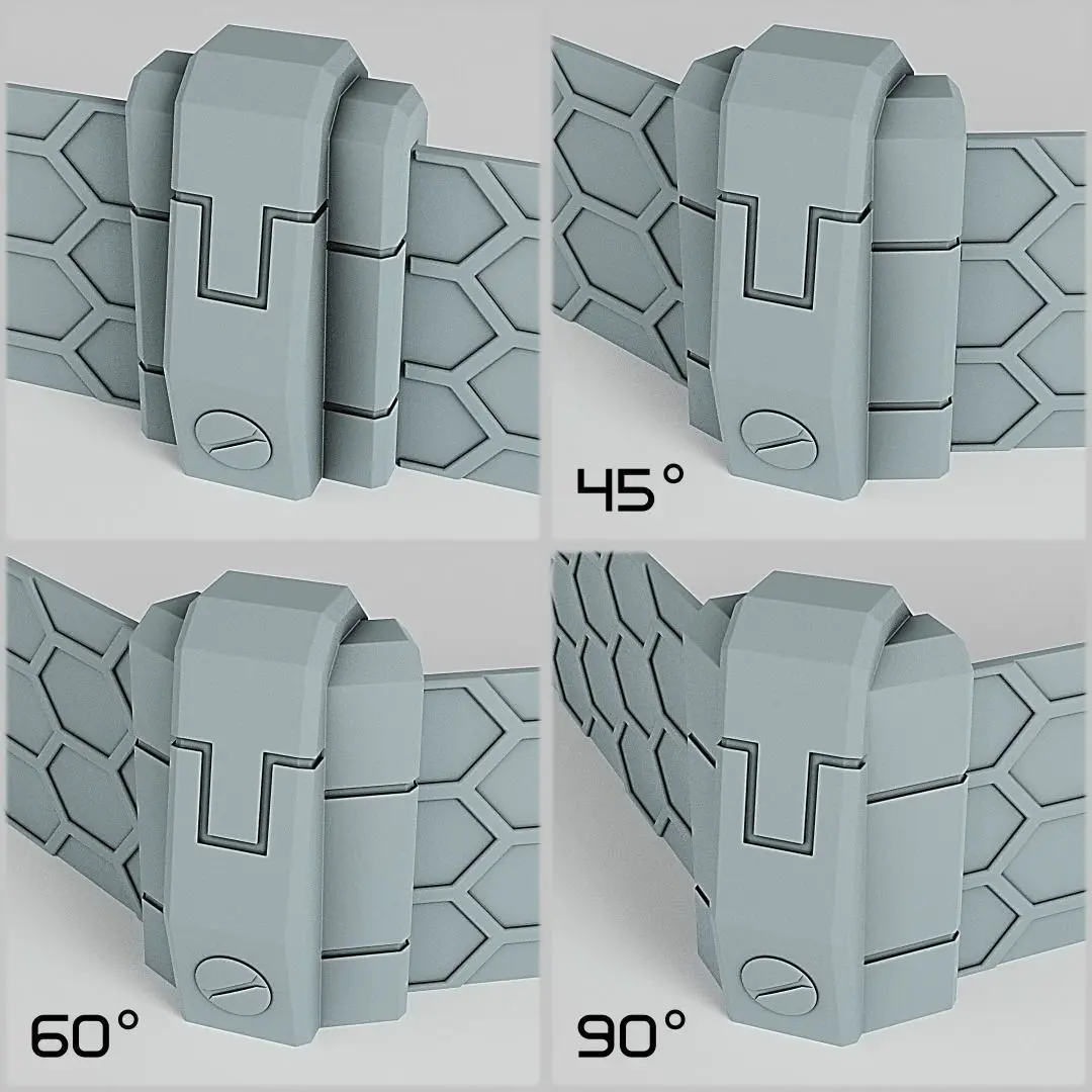 This set includes 20 pieces to print and customize a modular shield wall.Included are: