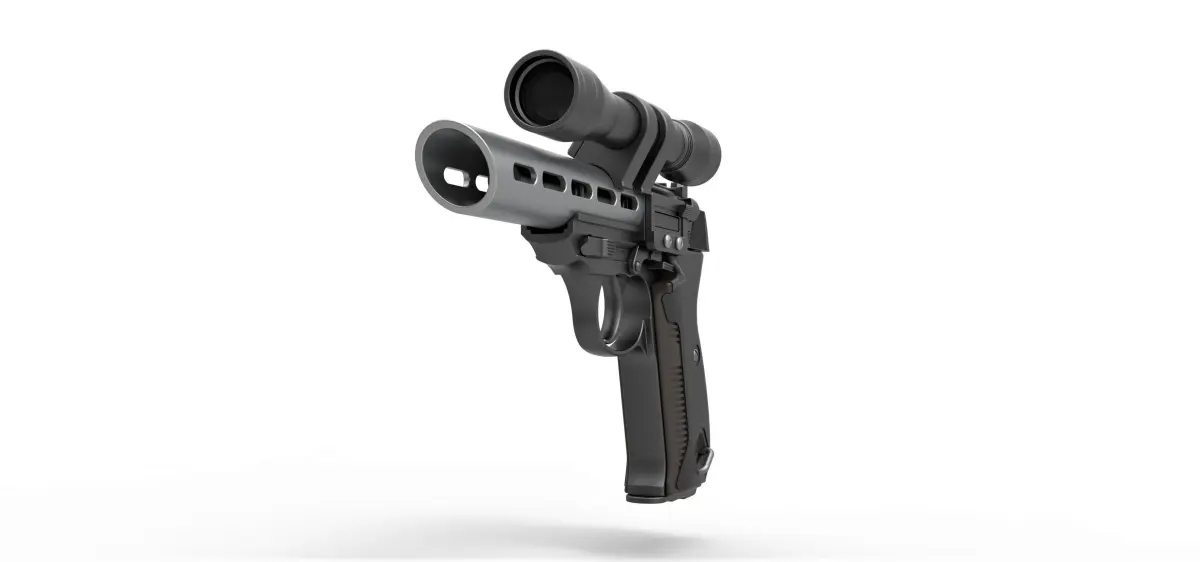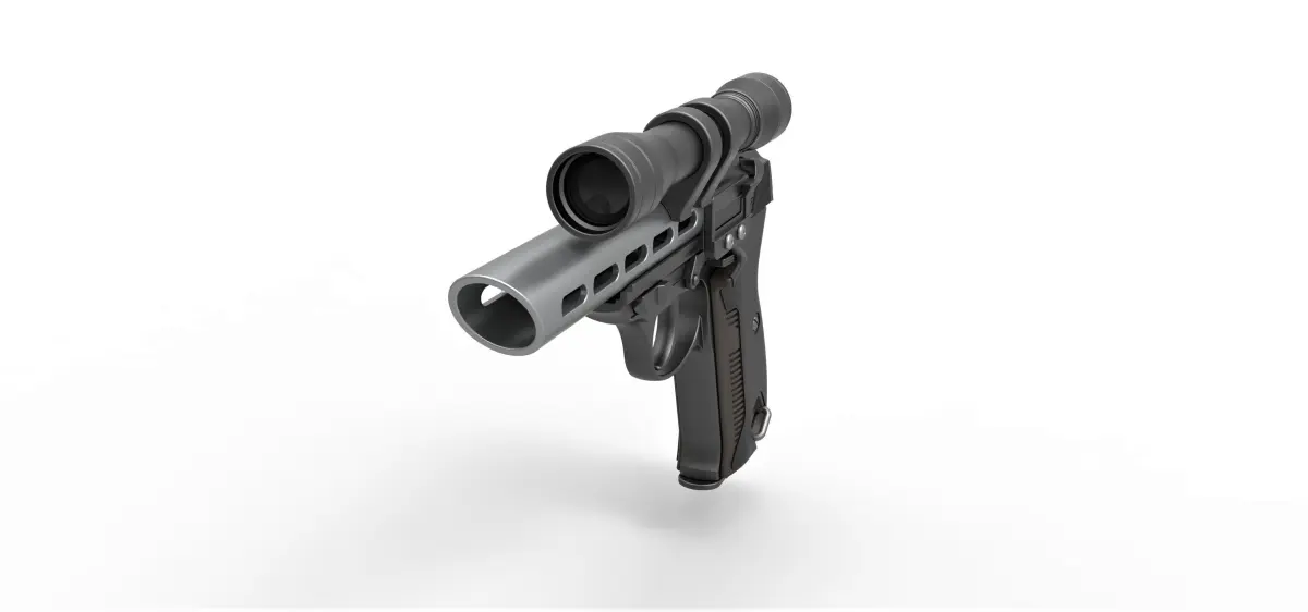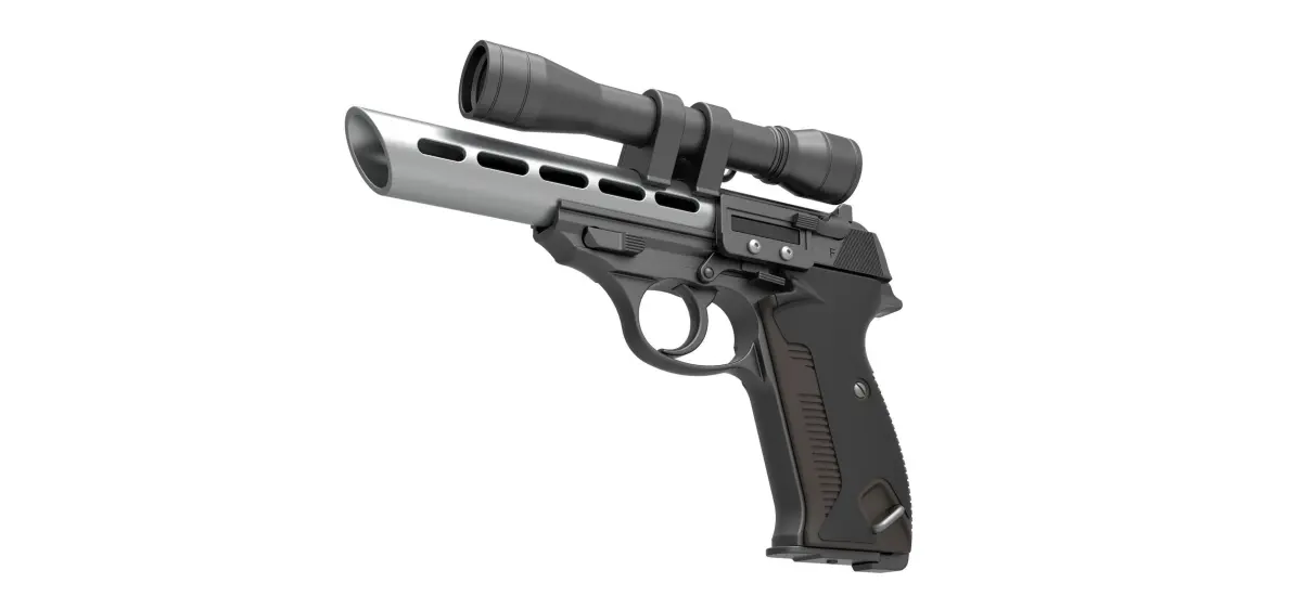 Useful links:https://starwars.fandom.com/wiki/Gideonhttps://www.therpf.com/forums/threads/the-mandalorian-moff-gideon-blaster-reference-thread.331387/https://www.youtube.com/watch?v=xZ5Jav3Gjvc&ab_channel=clipsmoviehttps://en.wikipedia.org/wiki/Walther_P38