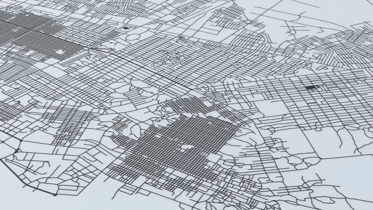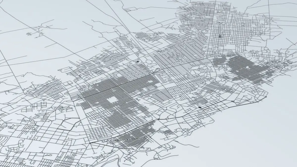 - the model is positioned on a flat surface (road network is on the “floor” - no elevation data included)