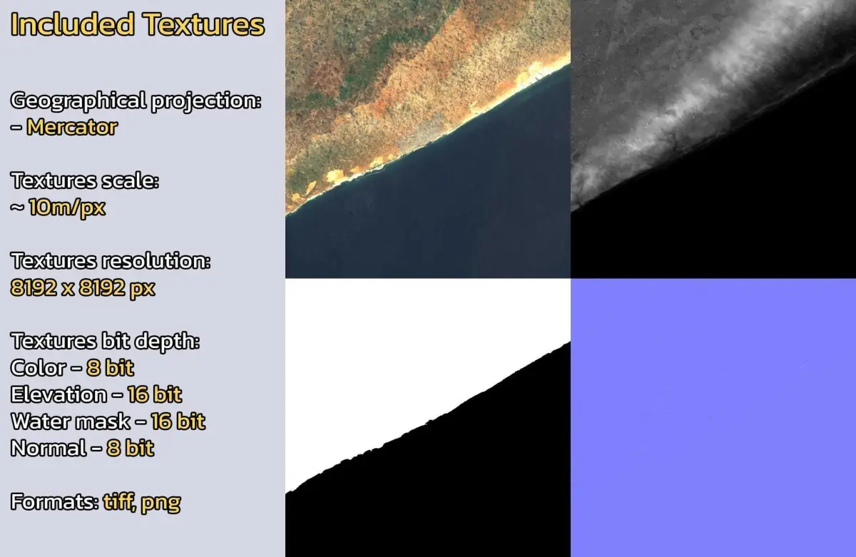 - Textures resolution: ~10m/px