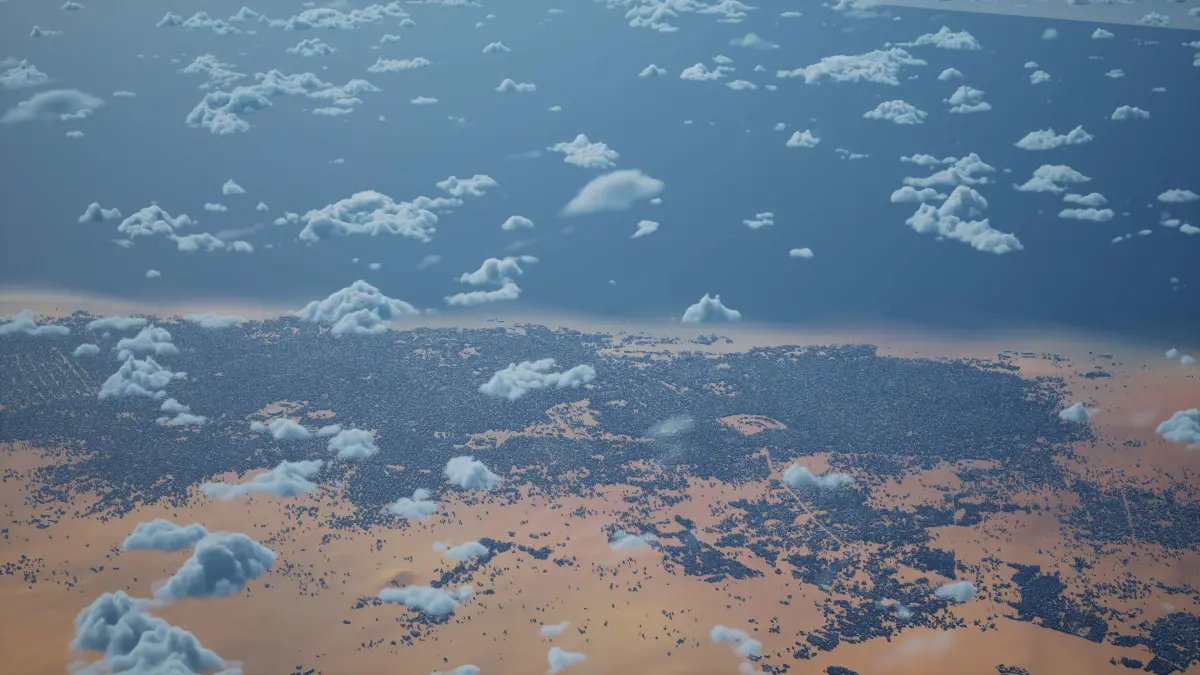 Originally created in Houdini 19. Final images rendered in Houdini. Data source is ASTER GDEM V3, ASTER WATER V1, Open Streep Maps 2022, Copernicus Sentinel 2016.