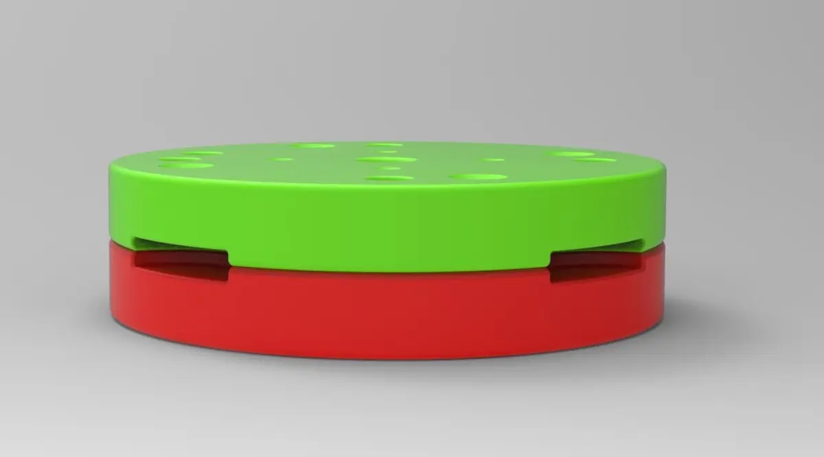 The bottom mold part has 5 special bosses and Top mold part has 5 special holes to guide mold parts in the closed state. Also, there are 4 slots for better opening with a screwdriver or similar instrument.In the Top mold part are 4 small holes for material injection.Both mold parts have 4 holes with diameter 6 mm for bolting it in closed state.Note! Only the mold! This is not a tire!