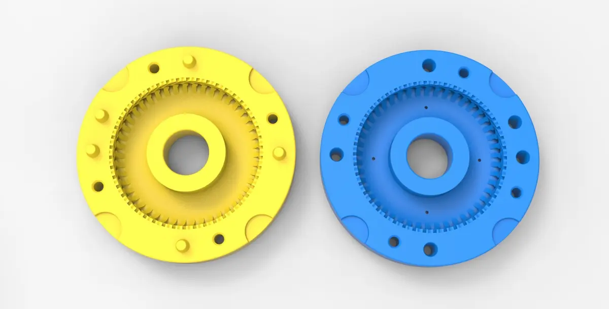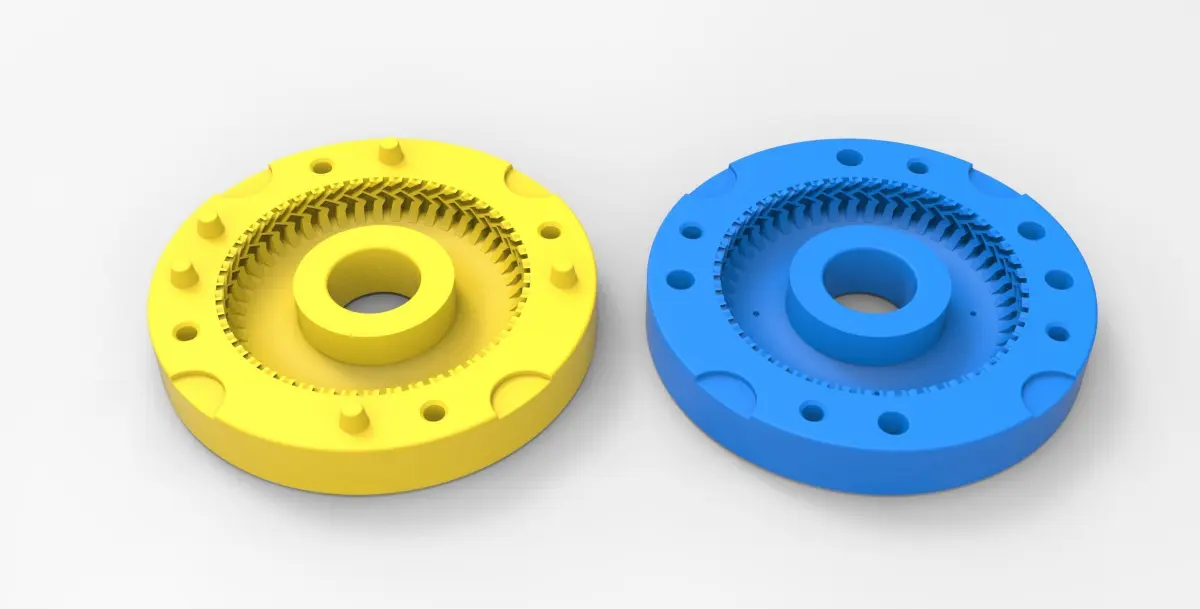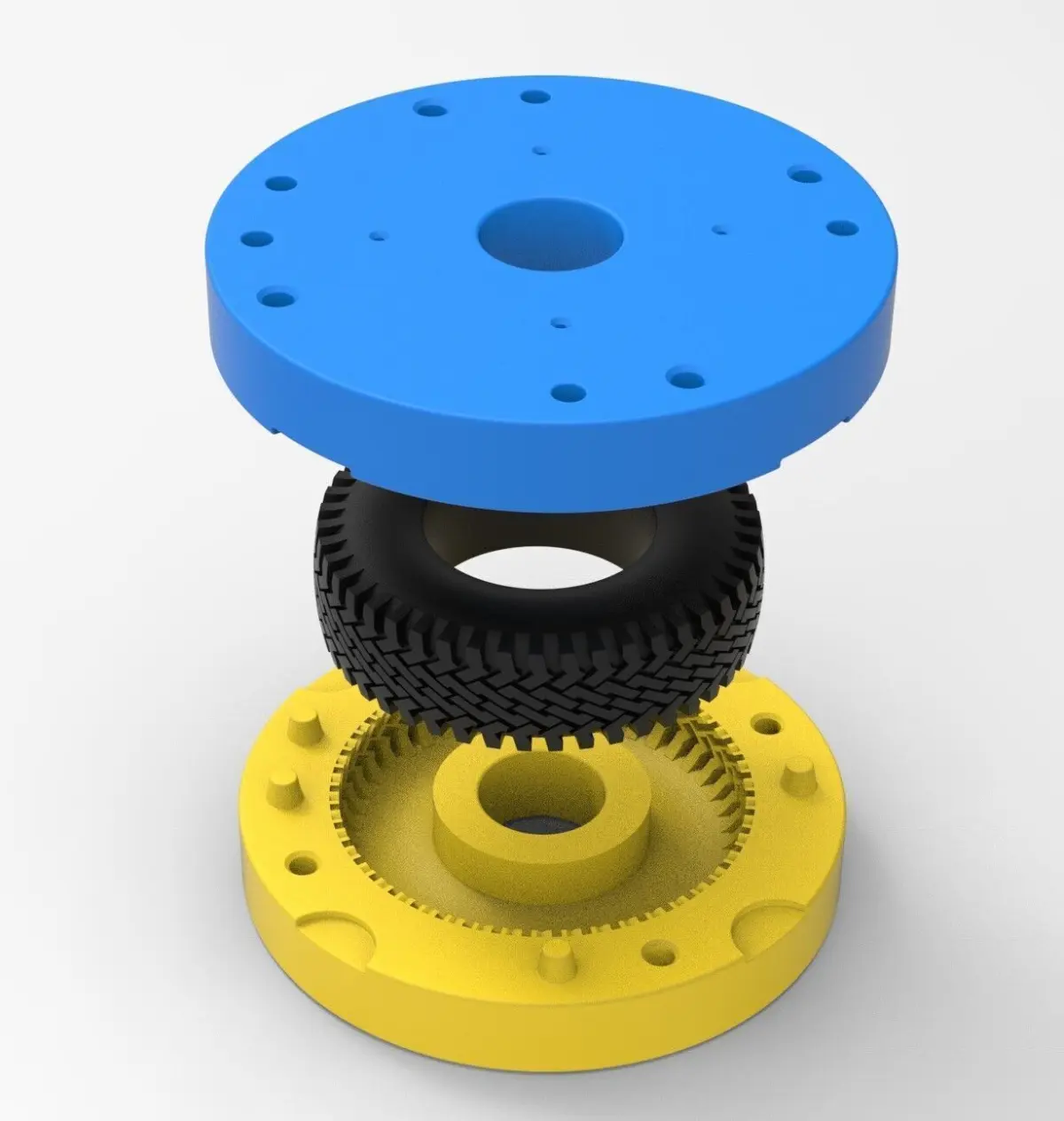 The bottom mold part has 5 special bosses and Top mold part has 5 special holes to guide mold parts in the closed state. Also, there are 4 slots for better opening with a screwdriver or similar instrument.In the Top mold part are 4 small holes for material injection.Both mold parts have 4 holes with diameter 6 mm for bolting it in closed state.Note! Only the mold! This is not a tire!