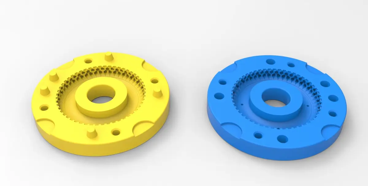 The bottom mold part has 5 special bosses and Top mold part has 5 special holes to guide mold parts in the closed state. Also, there are 4 slots for better opening with a screwdriver or similar instrument.In the Top mold part are 4 small holes for material injection.Both mold parts have 4 holes with diameter 6 mm for bolting it in closed state.Note! Only the mold! This is not a tire!