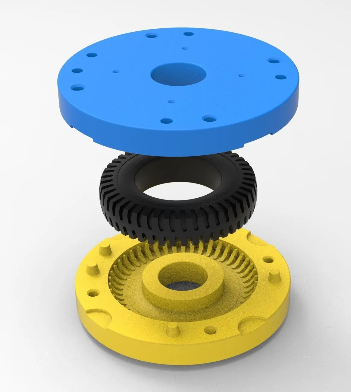 The bottom mold part has 5 special bosses and Top mold part has 5 special holes to guide mold parts in the closed state. Also, there are 4 slots for better opening with a screwdriver or similar instrument.In the Top mold part are 4 small holes for material injection.Both mold parts have 4 holes with diameter 6 mm for bolting it in closed state.Note! Only the mold! This is not a tire!