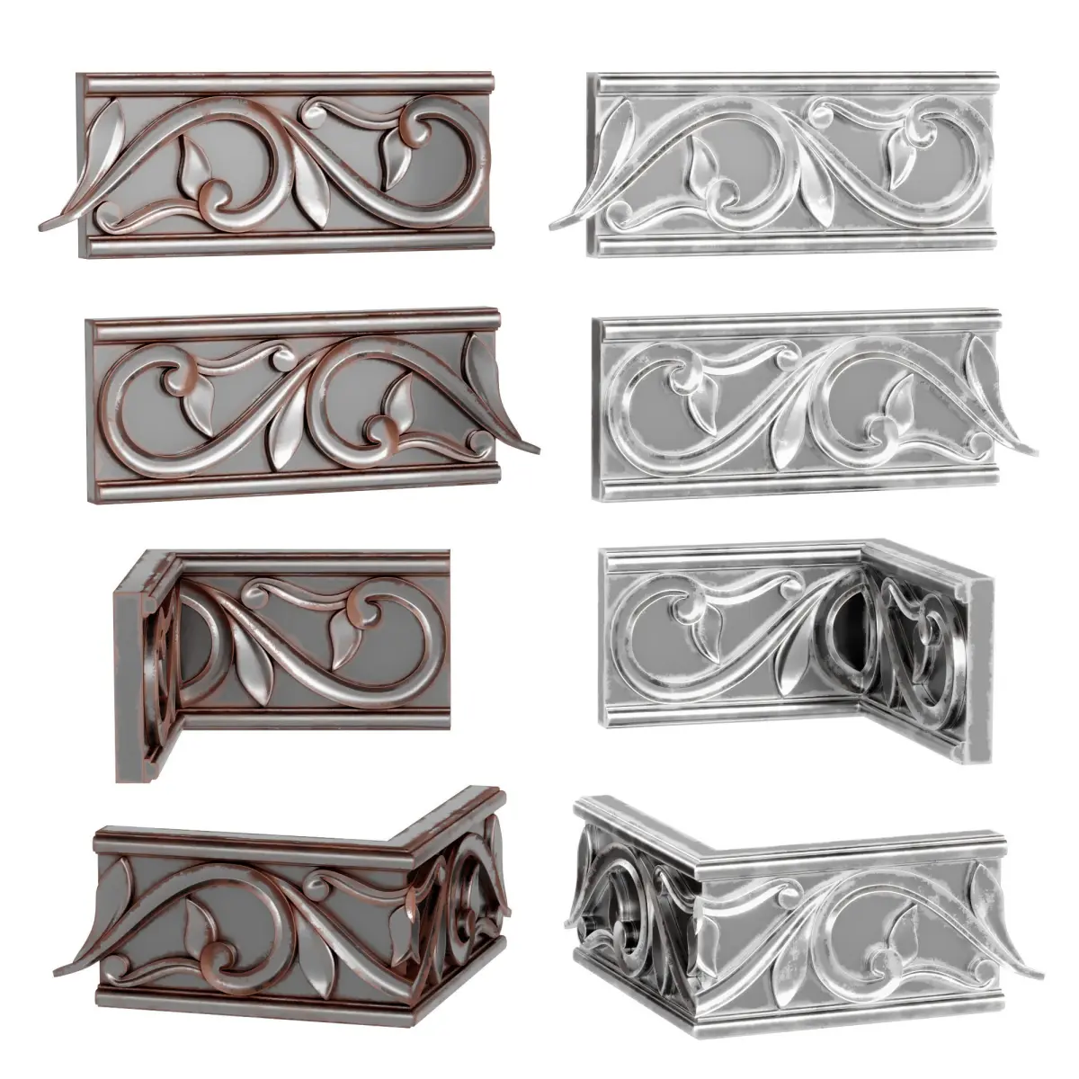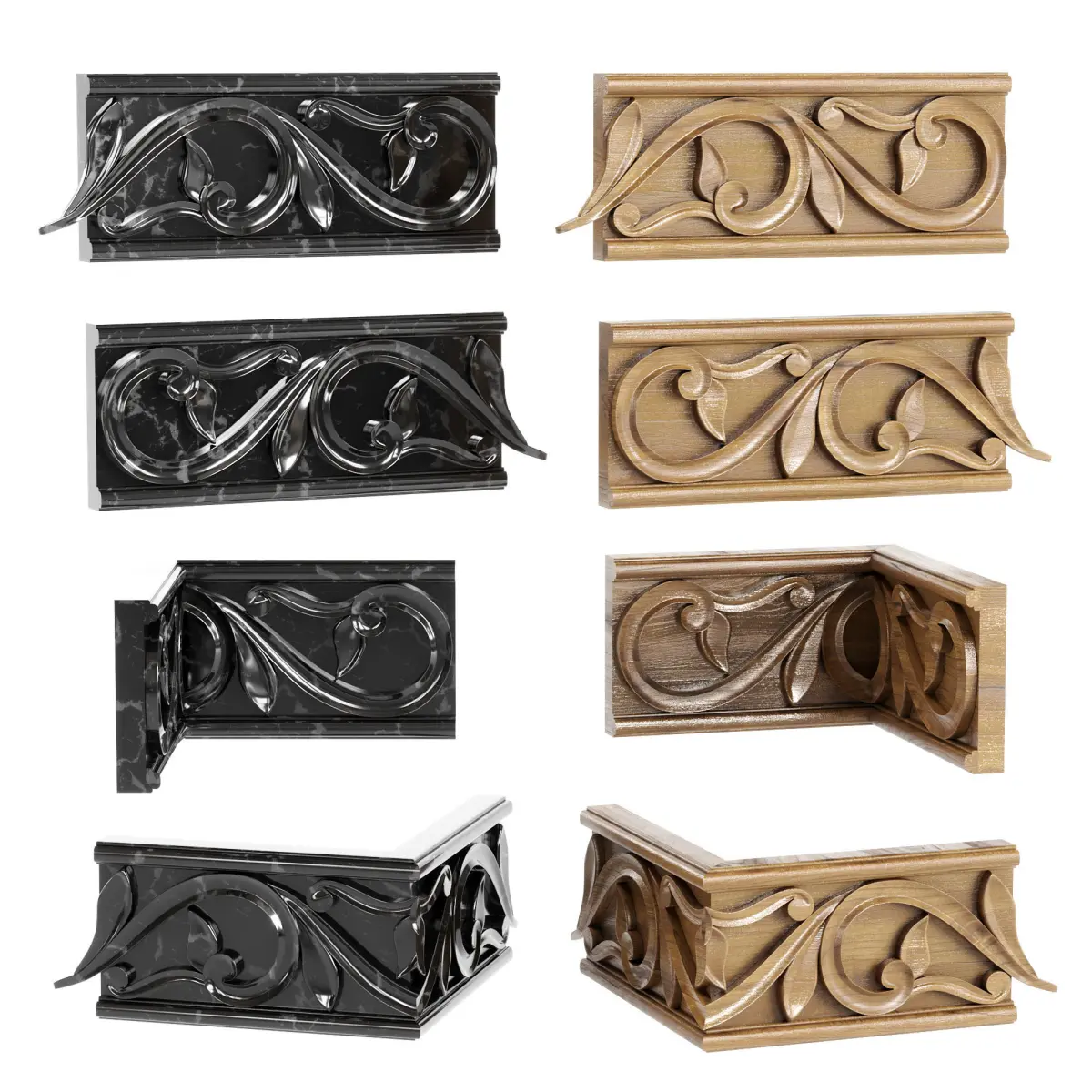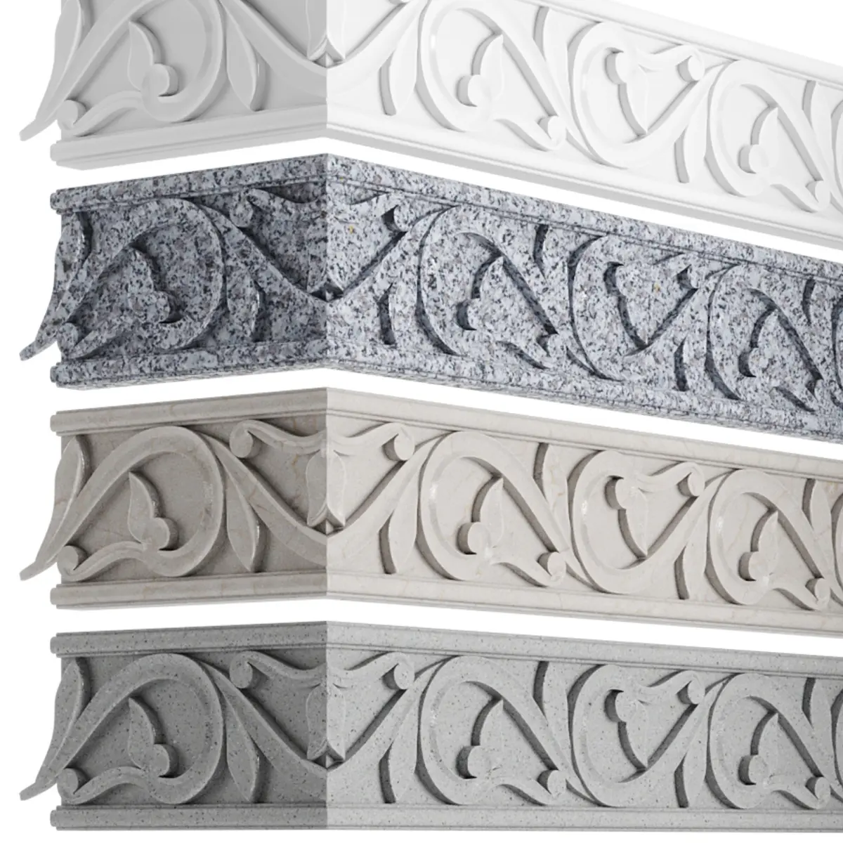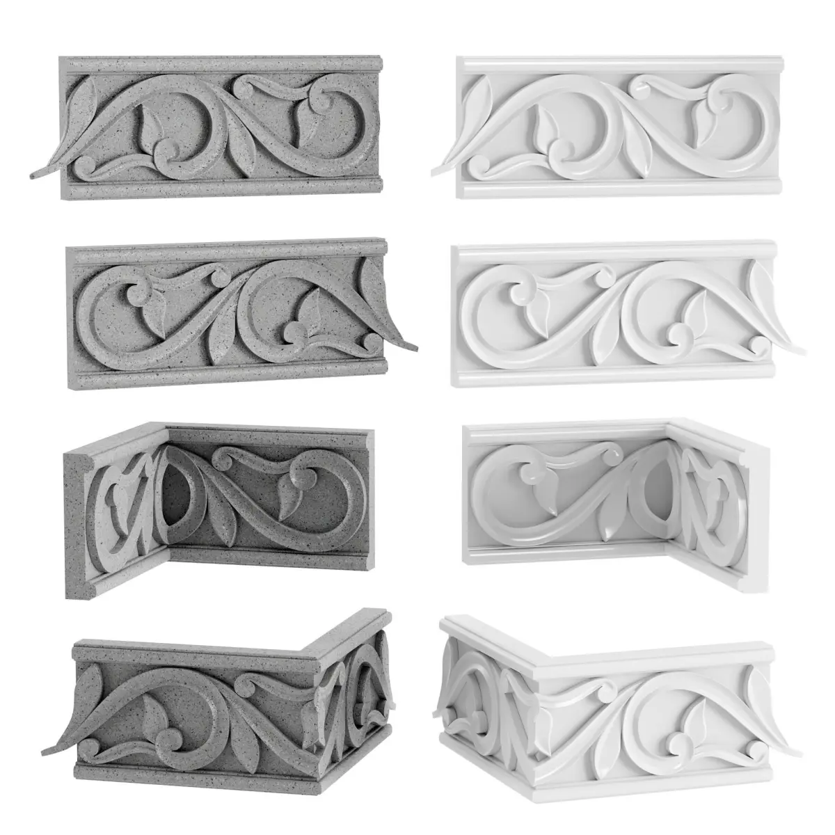 Prefabricated molding, height 100mm.Consists of four parts. Inside corner, outside corner and straight joints.