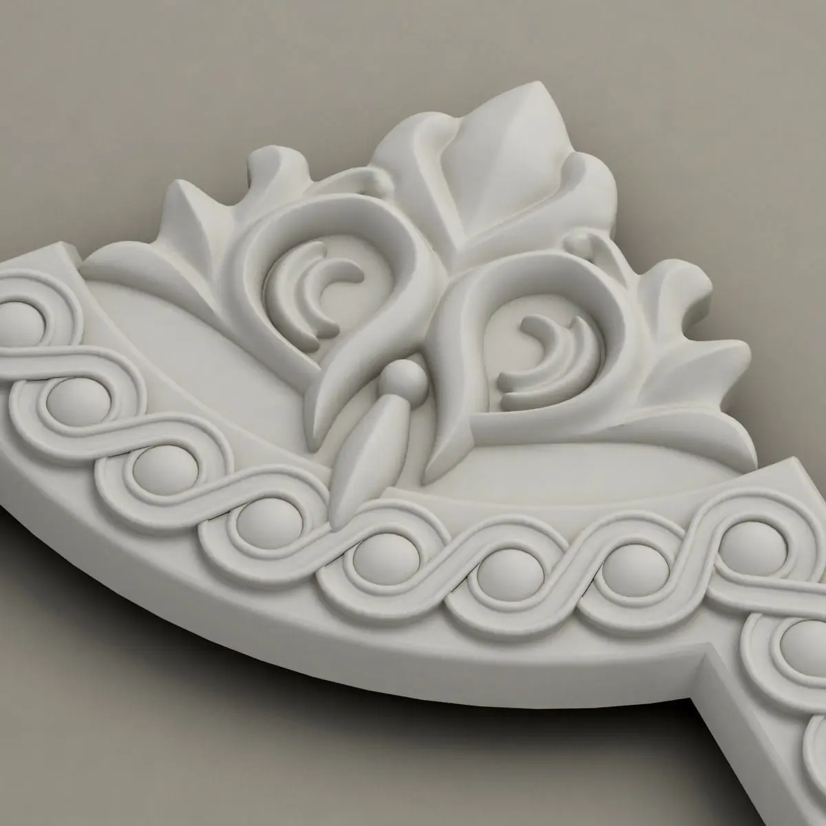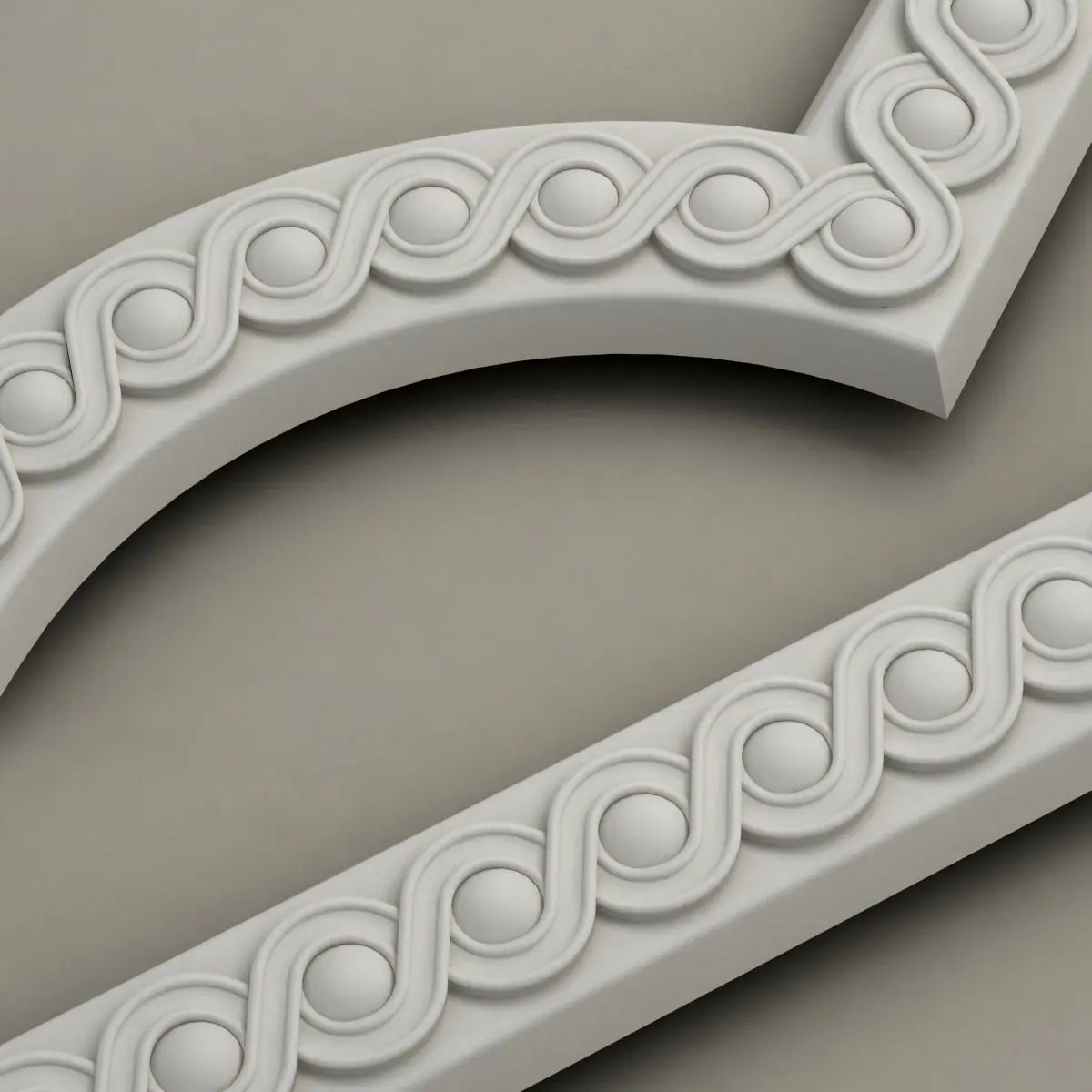 The set includes a base molding and a corresponding set of corner elements according to the catalog. The elements are joined in sequence without any visible seams.