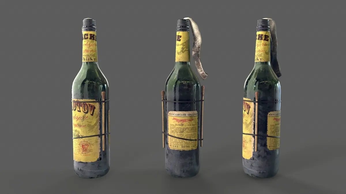 Molotov Cocktail low poly model for pbr, textures 2k(albedo,metallic, roughness,ao,normal) format inlude: *fbx *obj *max