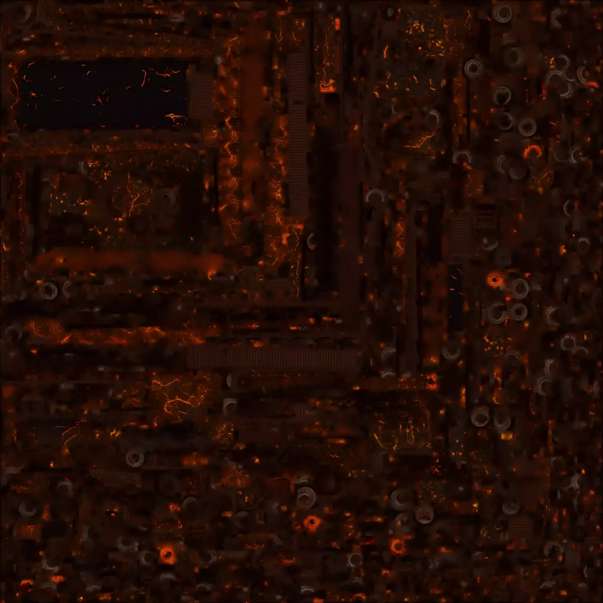 Molten Energy Glow: The entire surface and vents blaze with bright orange and red internal light.