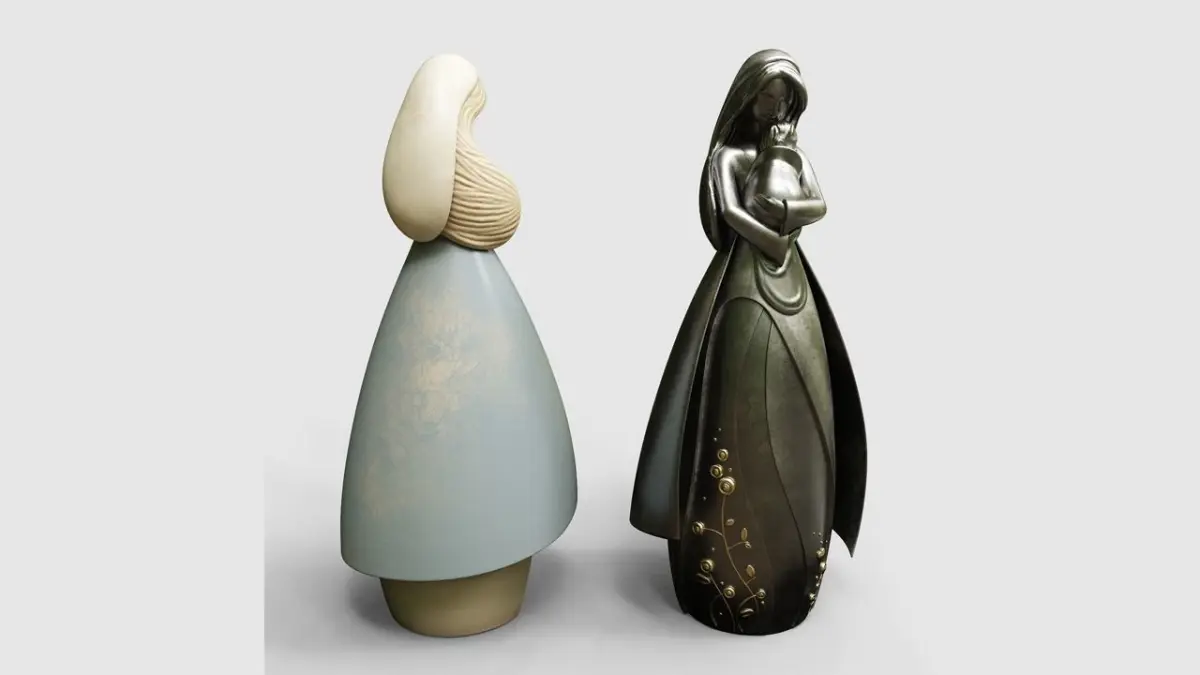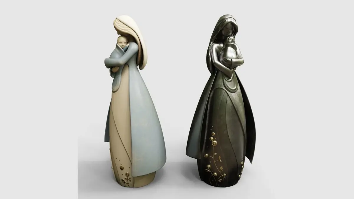 Statuette of a mother holding her baby vol 2, ideal for decorating interior spaces.