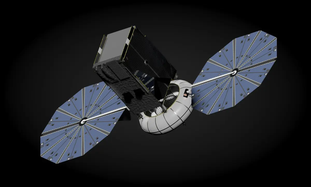 Momentus Space's reusable medium-heavy class Fervoride orbital tug, designed to carry payloads up to 20 tons within cislunar space