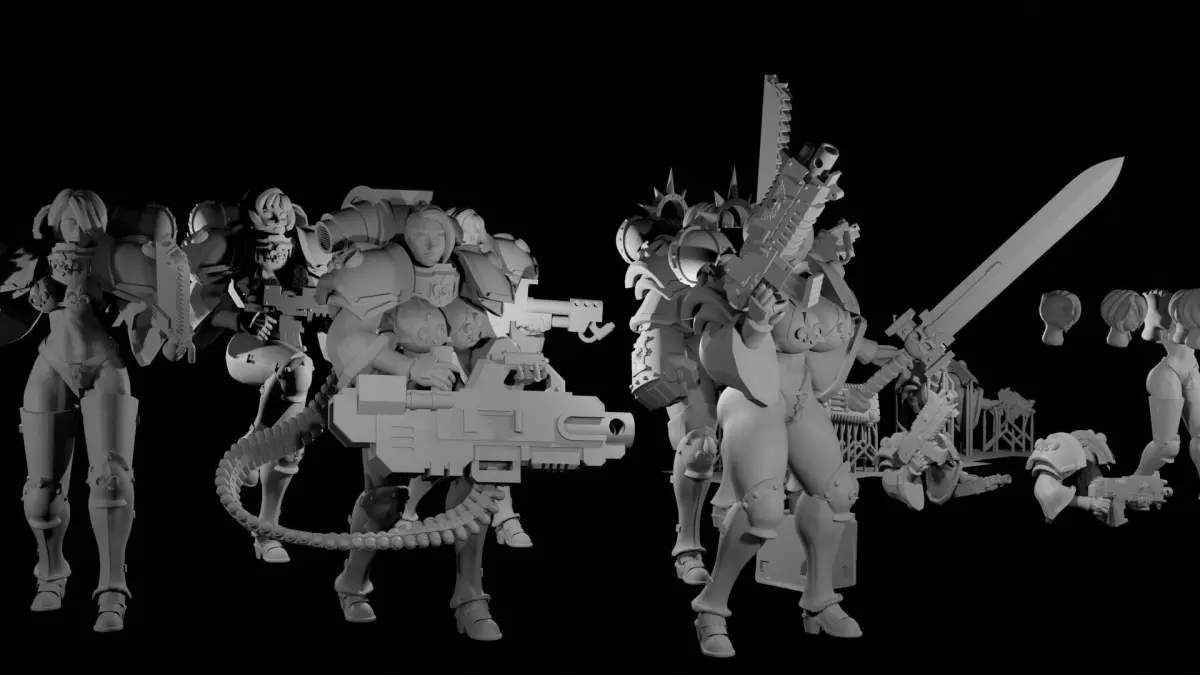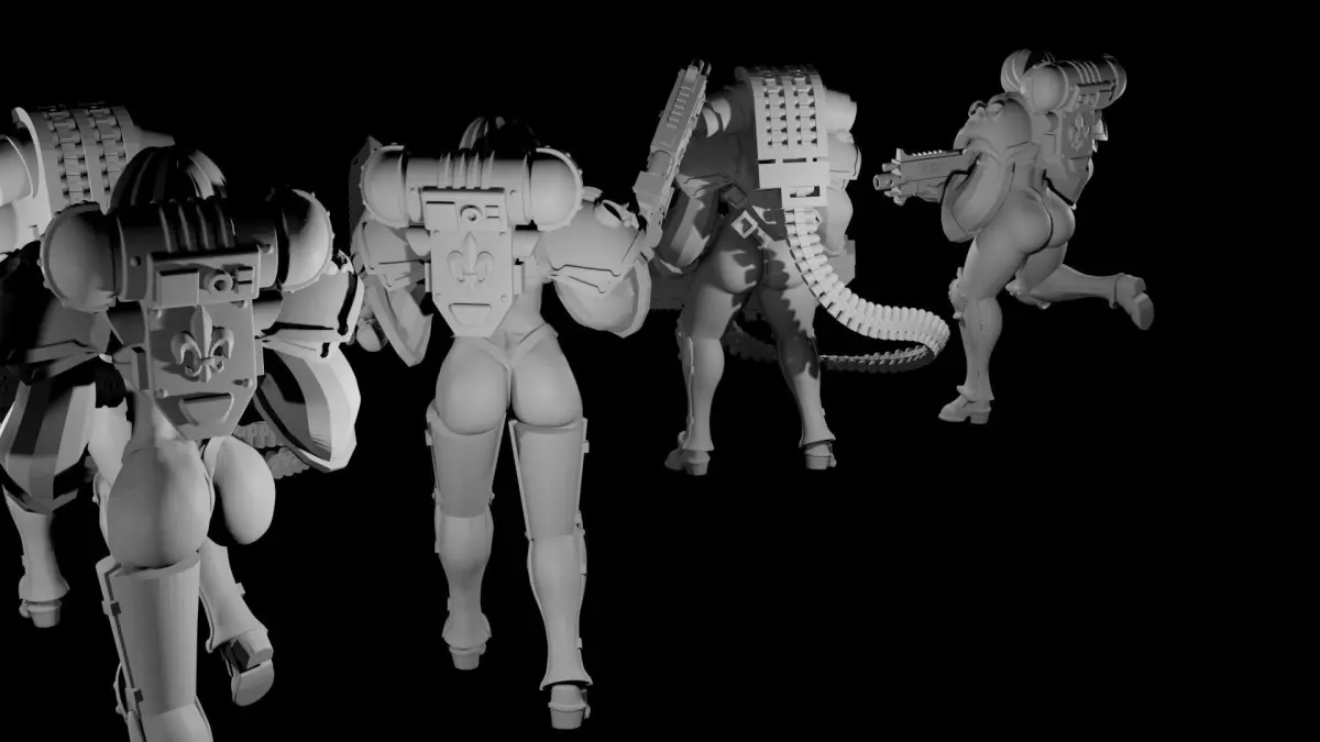 -Supported and unsupported files.-Any file with _125 after it is scaled up 125% for a better fit on 32mm base.-8 bodies total.-10 sets of arms (arms from original mommies of battle and UwU army also fit if scaled correctly).-5 packs.-9 pre-posed figures.-10 sets of heads with 3 hair types.