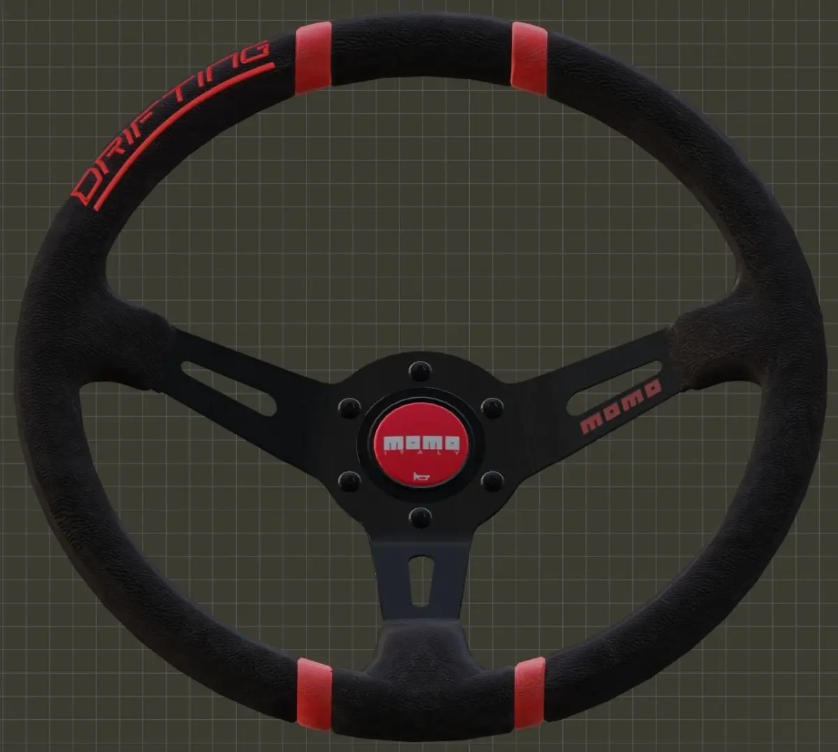 A Momo Drifting steering wheel. Scaled for Assetto Corsa, Hierarchy set up. Contains all textures/normal maps needed. can be used in any driving/racing simulator that supports mods.Included in the .zip file is all the required textures and a .fbx file with exported to scale.This can be used for your own games, or it can be used as a mod for games like Assetto corsa, beamng, GTA5 or any others.