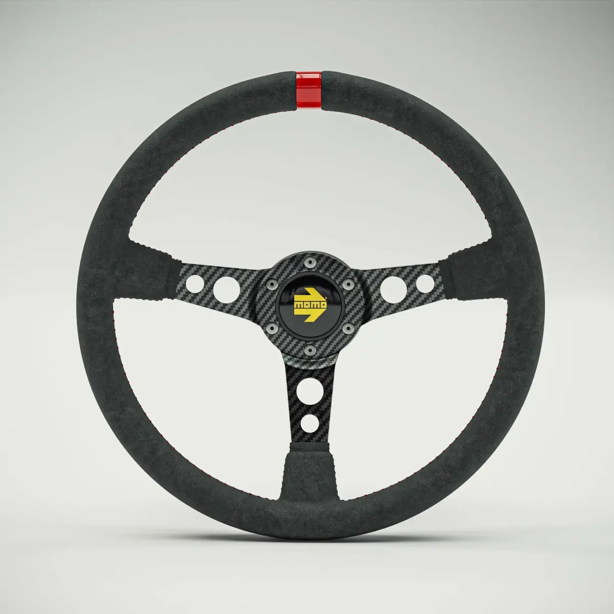 carbon fibre steering wheel with black alcantara and red stitching