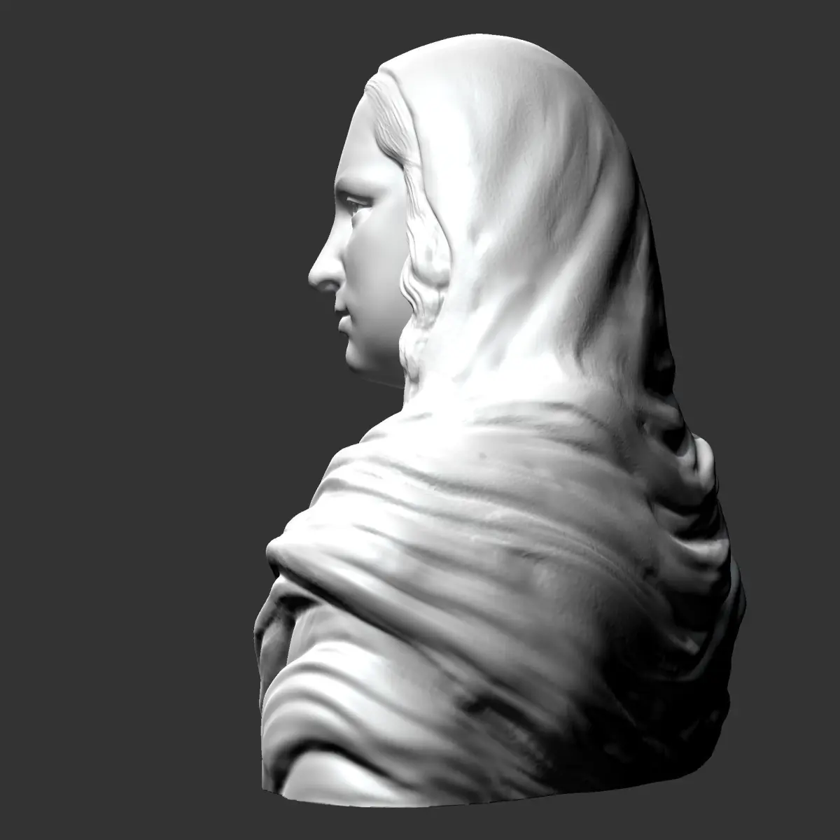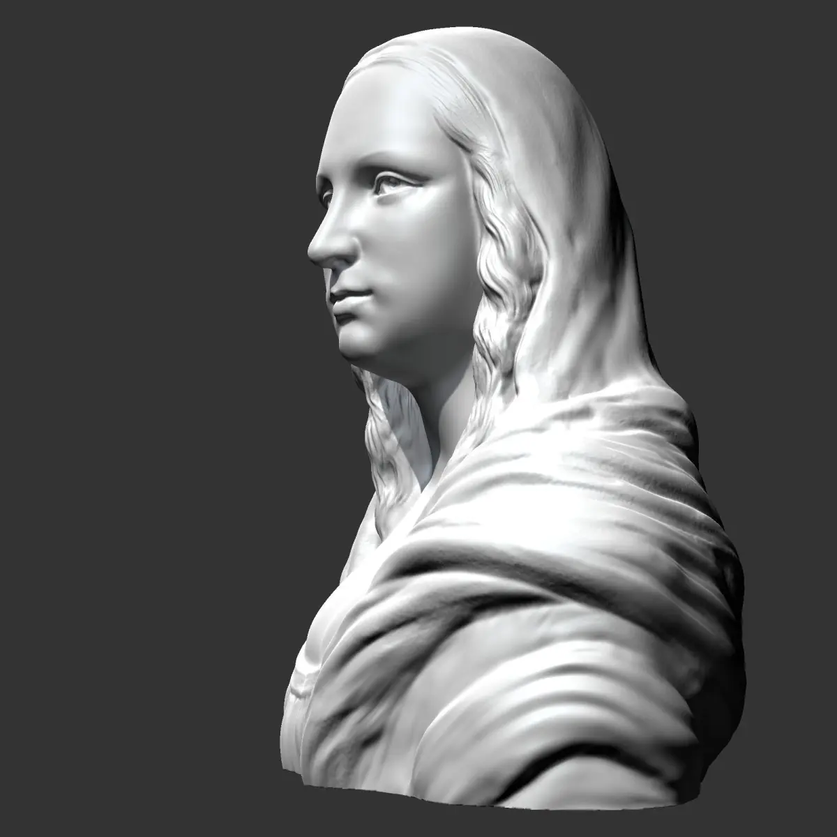 Mona Lisa . Bust . 3D model prepared for 3D printing . Model height 10 cm . feel free to scale it. The model is presented in formats Obj, Stl, Fbx . the number of polygons 4949178 .