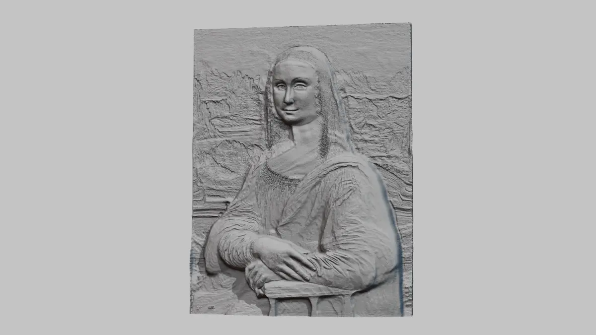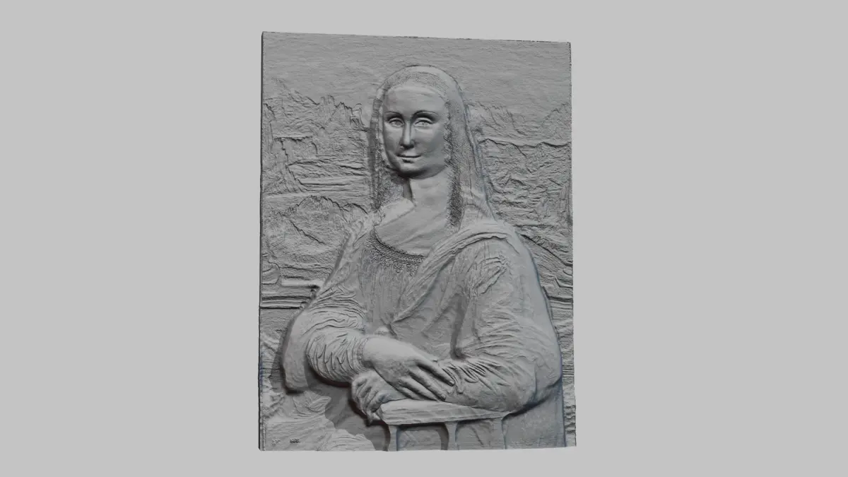 Keywords: Relief Sculpture, 3D Model, ArtCAM, CNC, CNC Router, 3D Printing, Digital Art, Decorative, Wall Decor, Wood Carving, Engraving, Landscape Model, Portrait Sculpture, Mona Lisa, Giaconda