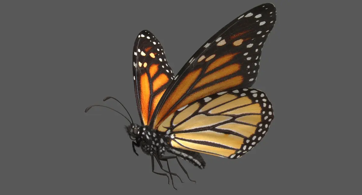 Animated 3D model of Monarch Butterfly (Danaus plexippus) created in Maya 2016.