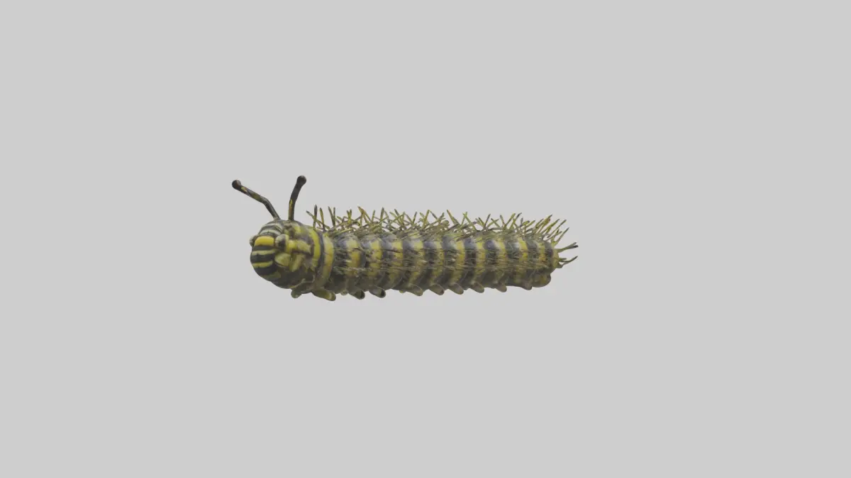 Monark Tırtıl, 3D model, larva, kelebek, doğa, eğitim, koruma, böcek, vahşi yaşam, FBX, OBJ, STL, GLB, USDZ, BLEND