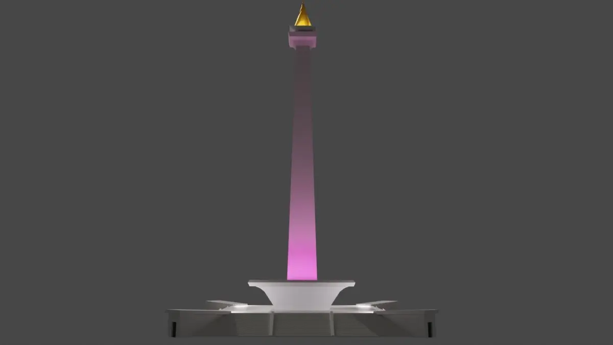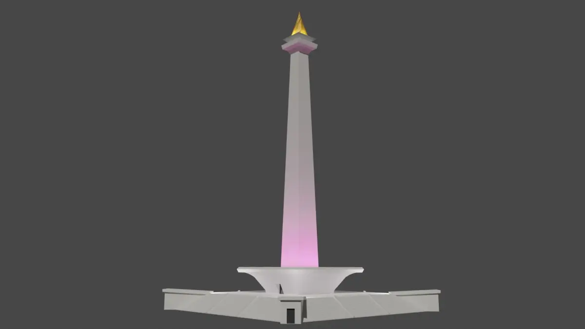 The National Monument or abbreviated as Monas or Tugu Monas is a 132 meter* (433 ft) high memorial monument that was erected to commemorate the resistance and struggle of the** Indonesian people to seize independence from the Dutch East Indies colonial rule.** The construction of this monument began on August 17, 1961 under the orders of president Soekarno and opened to the public on July 12, 1975. The monument is crowned with flames covered with gold sheets which symbolizes the** flaming fighting spirit of the Indonesian people.** The National Monument is located right in the middle of Medan Merdeka Square, Central Jakarta.This model represents Monas during nighttime and this model has nice detail as a low poly.