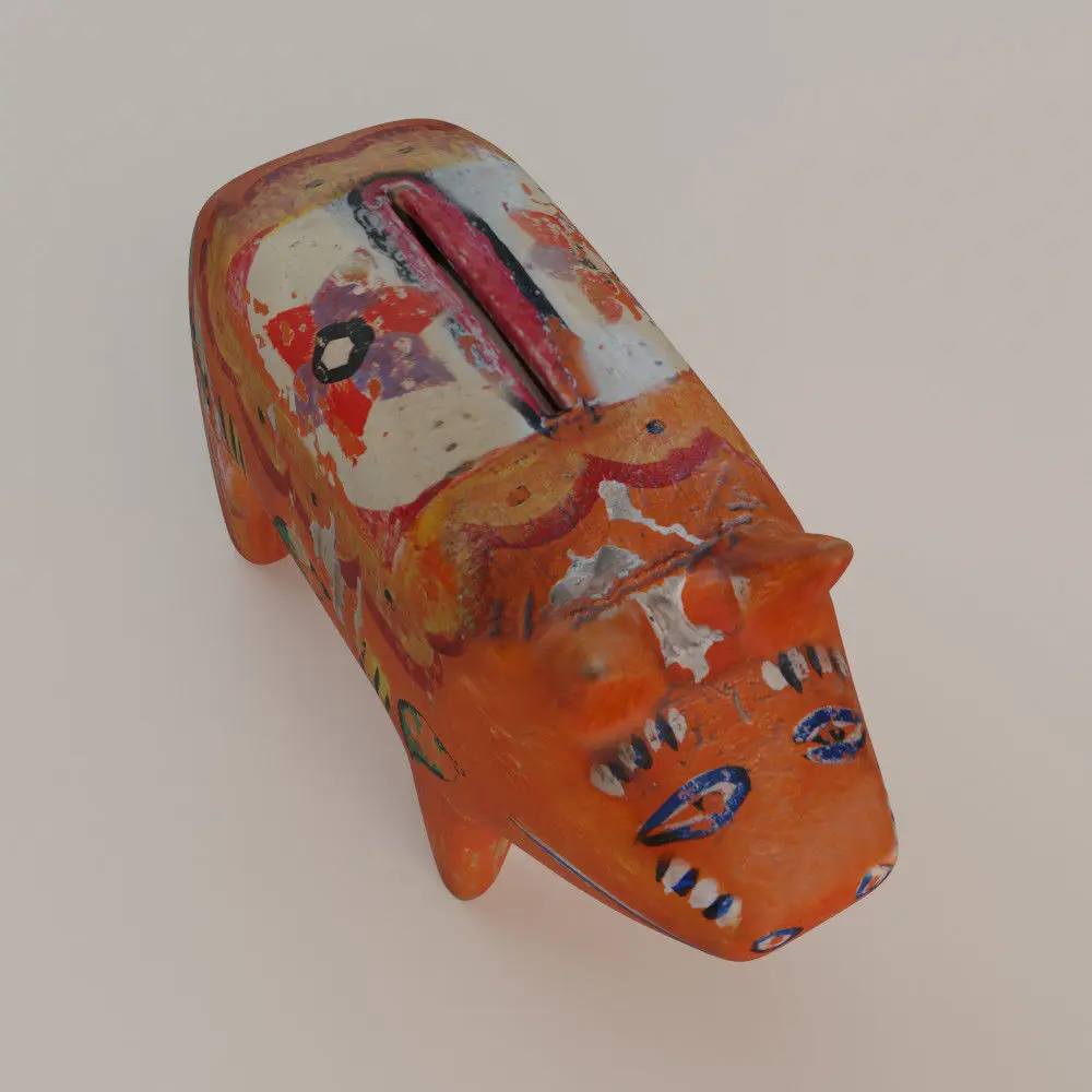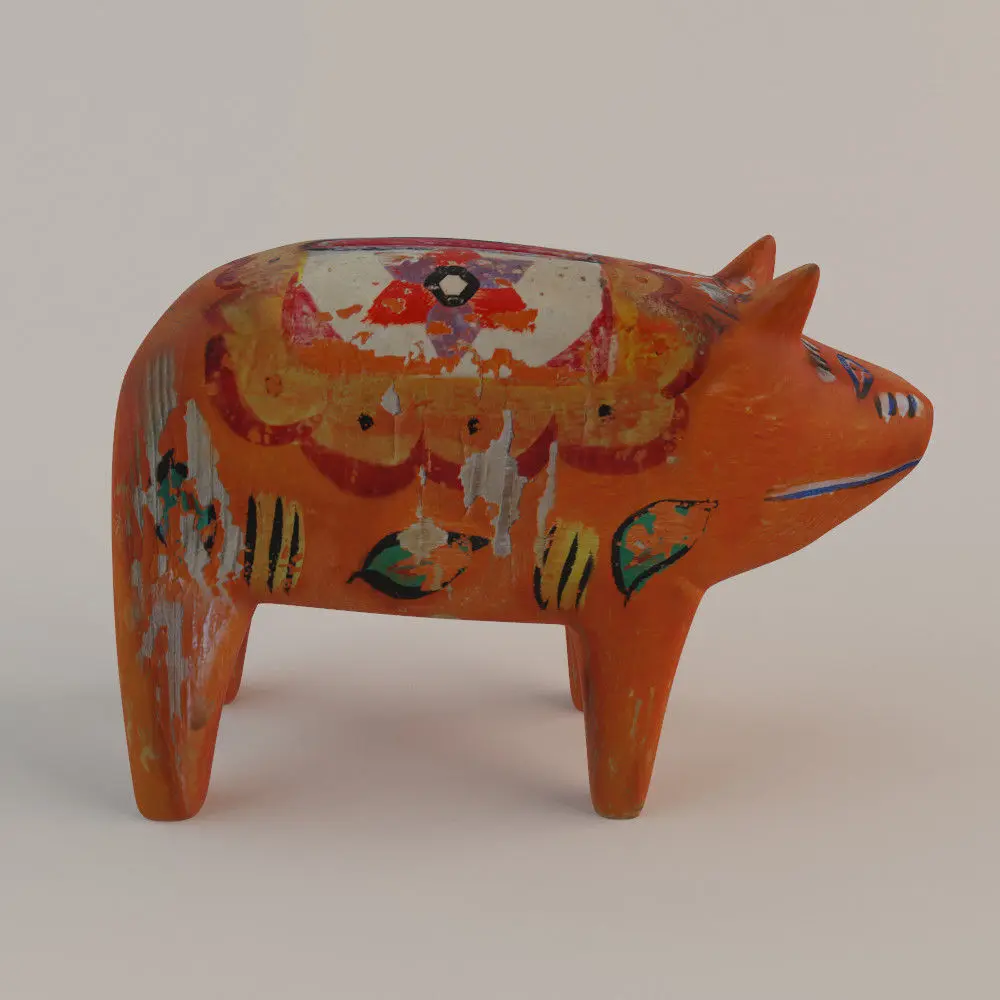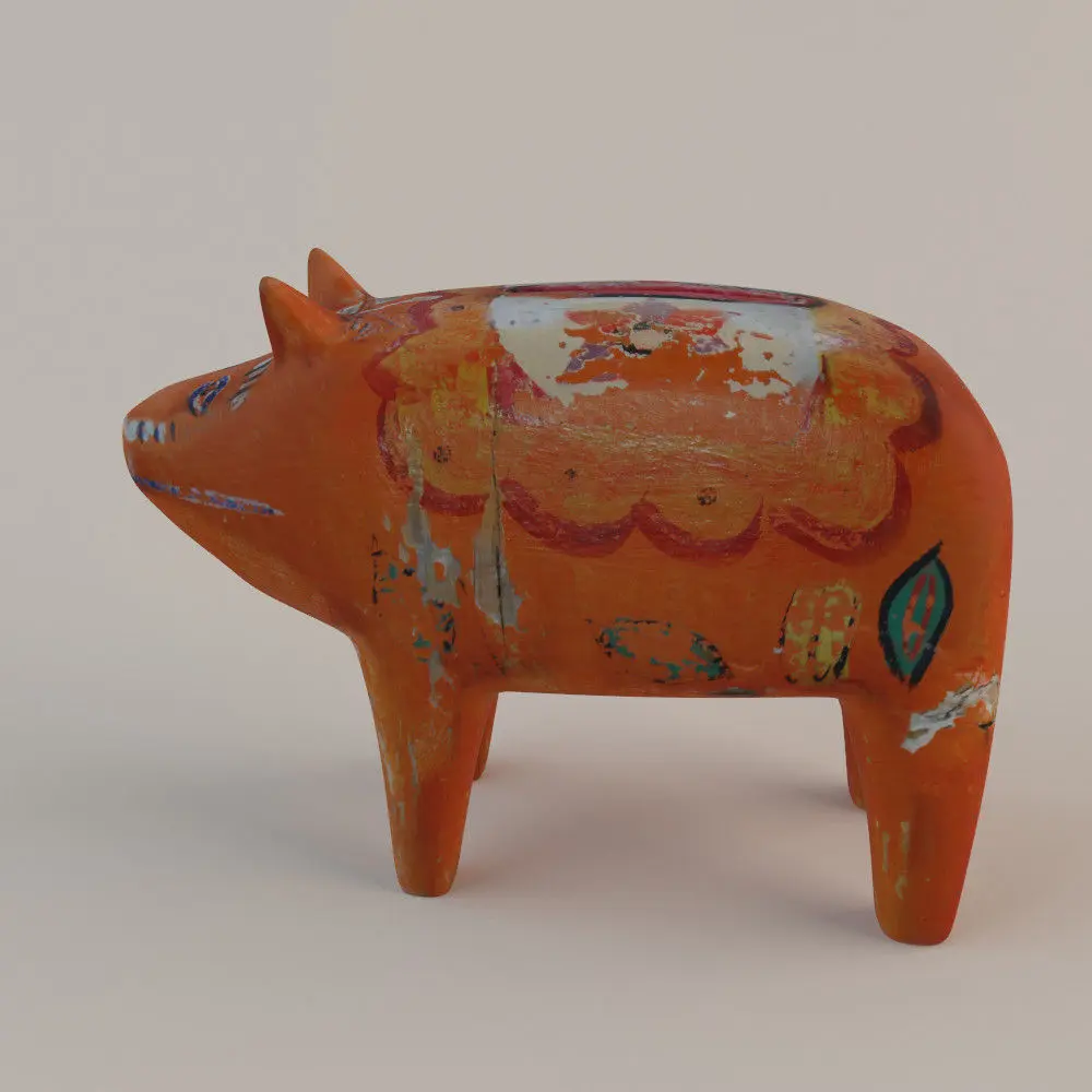A old Swedish wooden money bank painted in "Dala horse" colors and pattern.