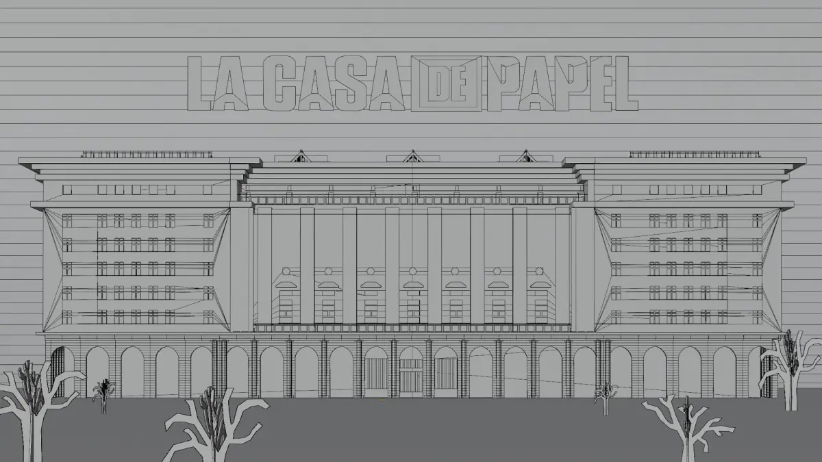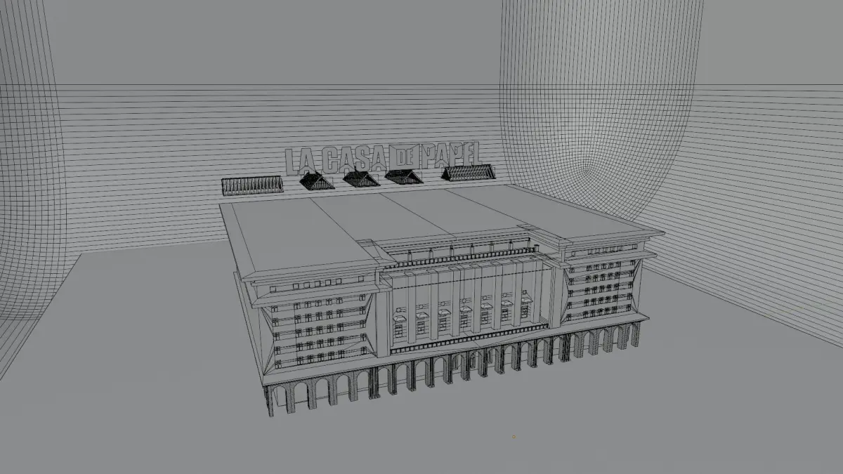 A fully detailed 3D Model of The Bank Of Spain. All lights are perfected to the exact scene from the intro of the series. A perfect recreation of the Bank of Spain showed in the inro of the series Money Heist. It also includes the animation of the camera that pulls back from the building giving it a smooth dolly effect.