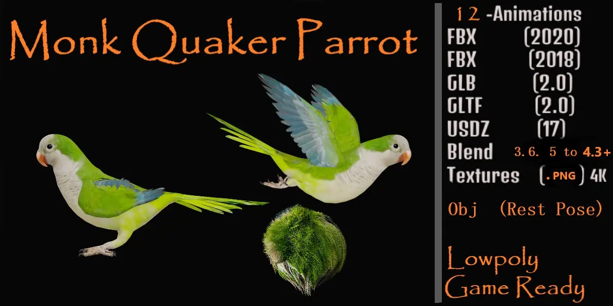 The monk parakeet, also known as the monk parrot or quaker parrot, is a species of true parrot in the family Psittacidae. It is a small, bright-green parrot with a greyish breast and greenish-yellow abdomen. Its average lifespan is approximately 15 years..3D Monk Quaker Parrot Bird Animal Model By Nyilonelycompany.