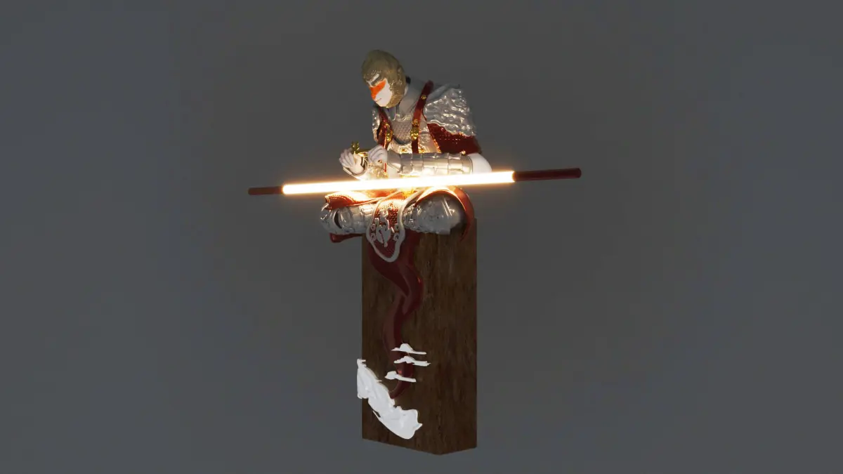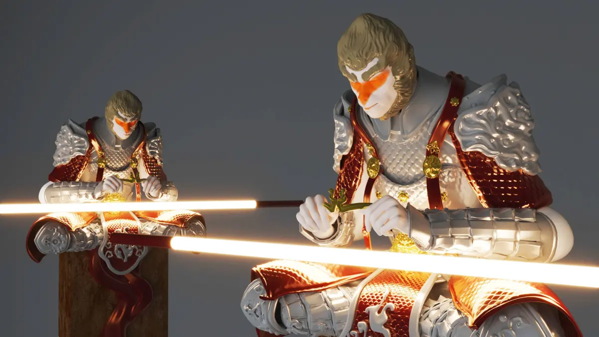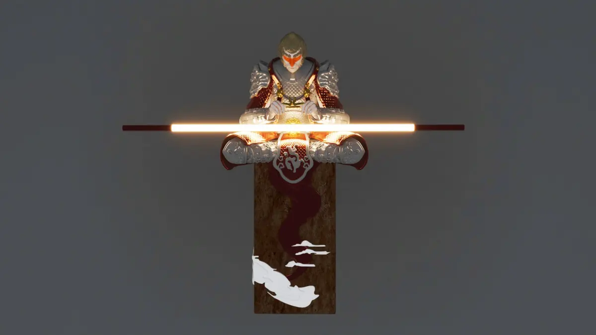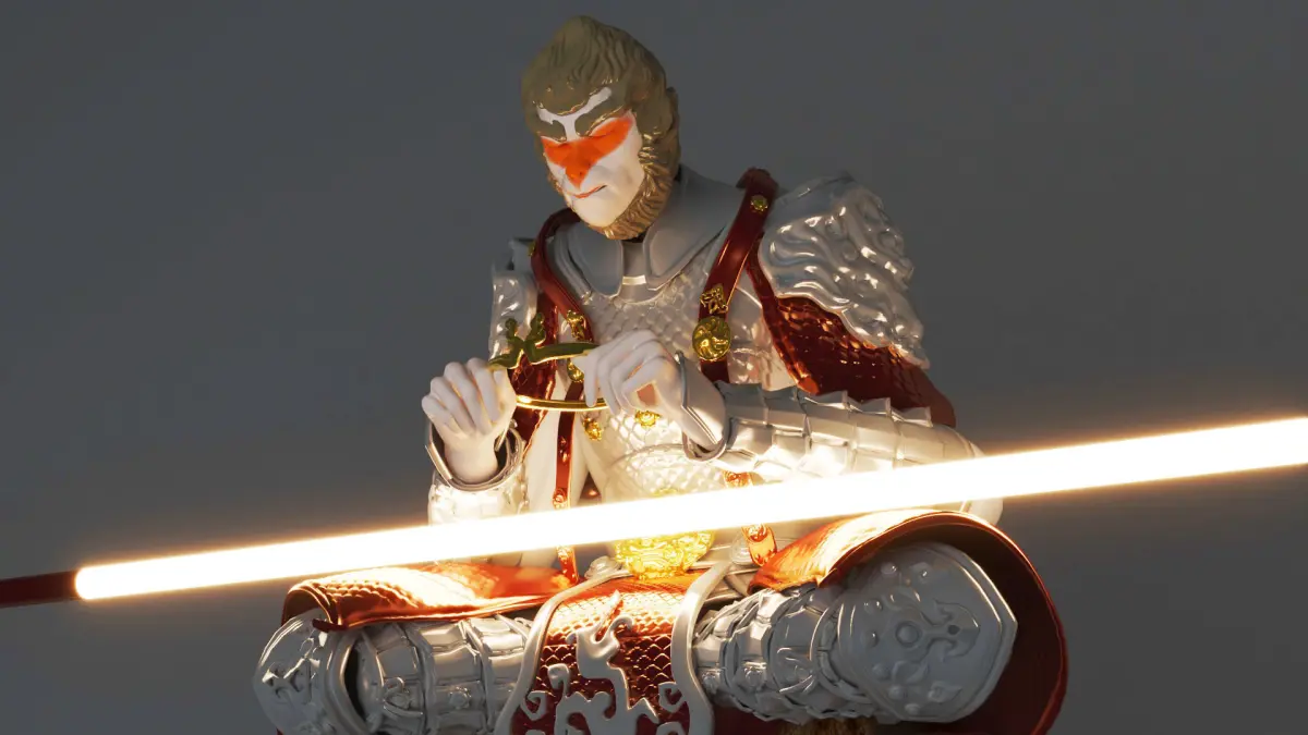 Monkey King Sun Wu Kong Ancient Chinese Sculpture. Suitable for chinese, zen, ancient and interior design. The materials are already set in the scene.