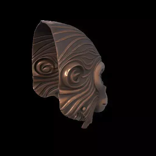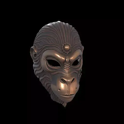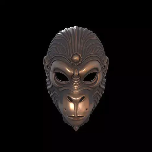 A detailed bronze monkey mask designed with ancient ceremonial style. Featuring hollow eyes, carved fur textures, expressive facial features, and a decorative floral emblem on the forehead, this design captures the weight and mystery of a timeless artifact. Metallic bronze tones emphasize depth and texture, making it ideal for display, art collections, or themed cosplay.