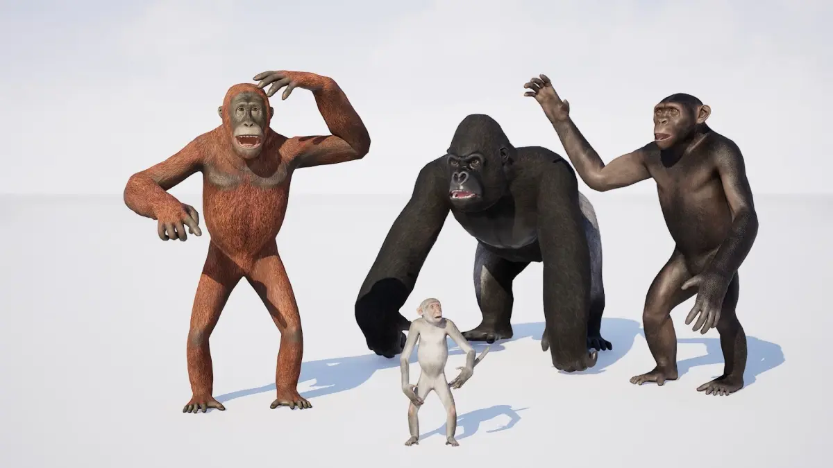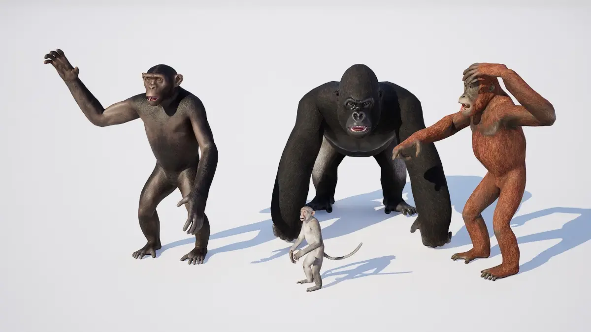 4 Rigged monkeysChimpanzeeOrangutanMonkeyGorilla