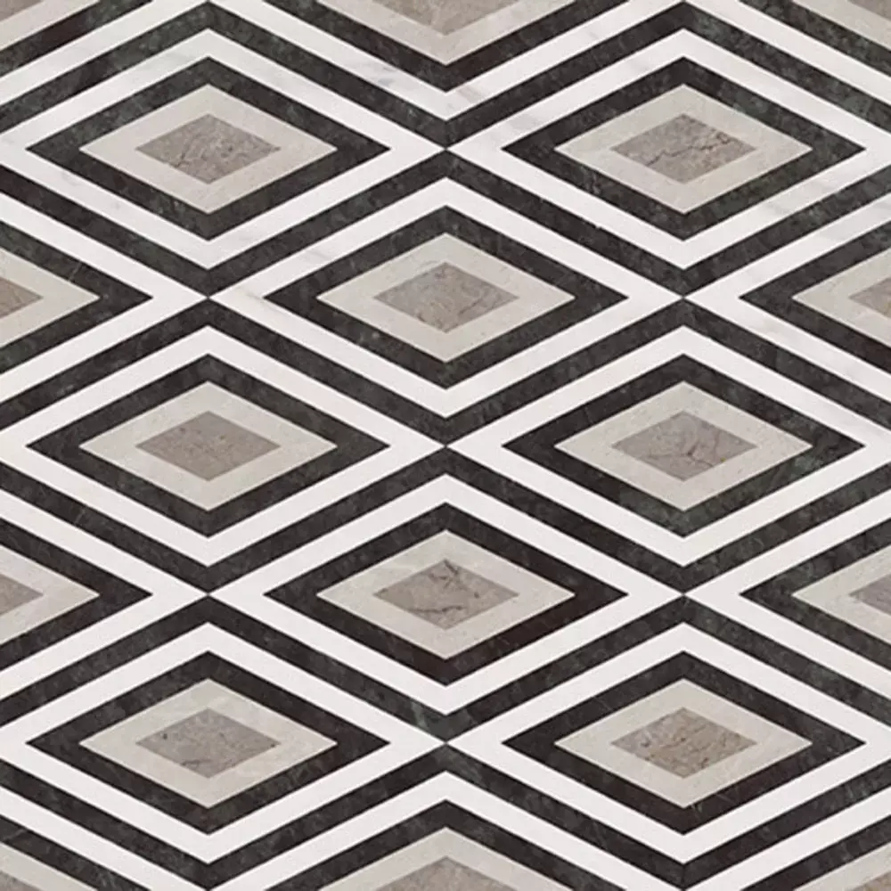 A sophisticated diamond‑repeat wall pattern built from alternating bands of charcoal, warm grey, and white stone for subtle depth and rhythm in living rooms, lounges, and hospitality spaces. Provided as a seamless 4096×4096 texture set with Albedo, Normal, Roughness, and AO maps calibrated for crisp edges, soft shadowing, and gentle sheen in Blender, 3ds Max, Maya, Unreal, and Unity. The tight repeat tiles cleanly across large feature walls without visible seams while retaining sharp detail for closeups under directional light. Works beautifully with cream upholstery, brass lighting, and light stone floors to balance contrast and warmth in contemporary interiors. License allows commercial renders and real‑time projects; redistribution of raw files or reselling the asset as‑is is prohibited.