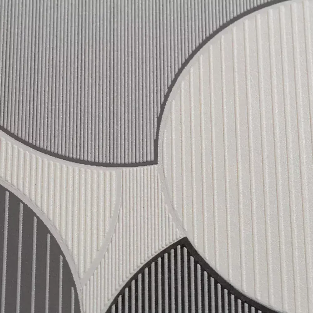 OverviewA modern geometric wallpaper texture composed of interlocking petal shapes with fine vertical ribbing across each segment. The crisp monochrome palette and embossed edges create clean contrast and subtle depth, ideal for minimalist living rooms, offices, cafes, and product staging. The seamless pattern scales elegantly on wide feature walls without visible joins.