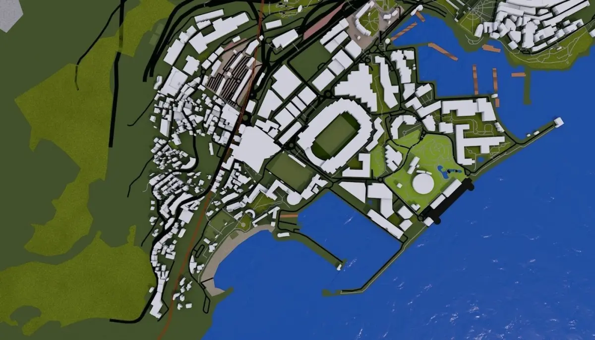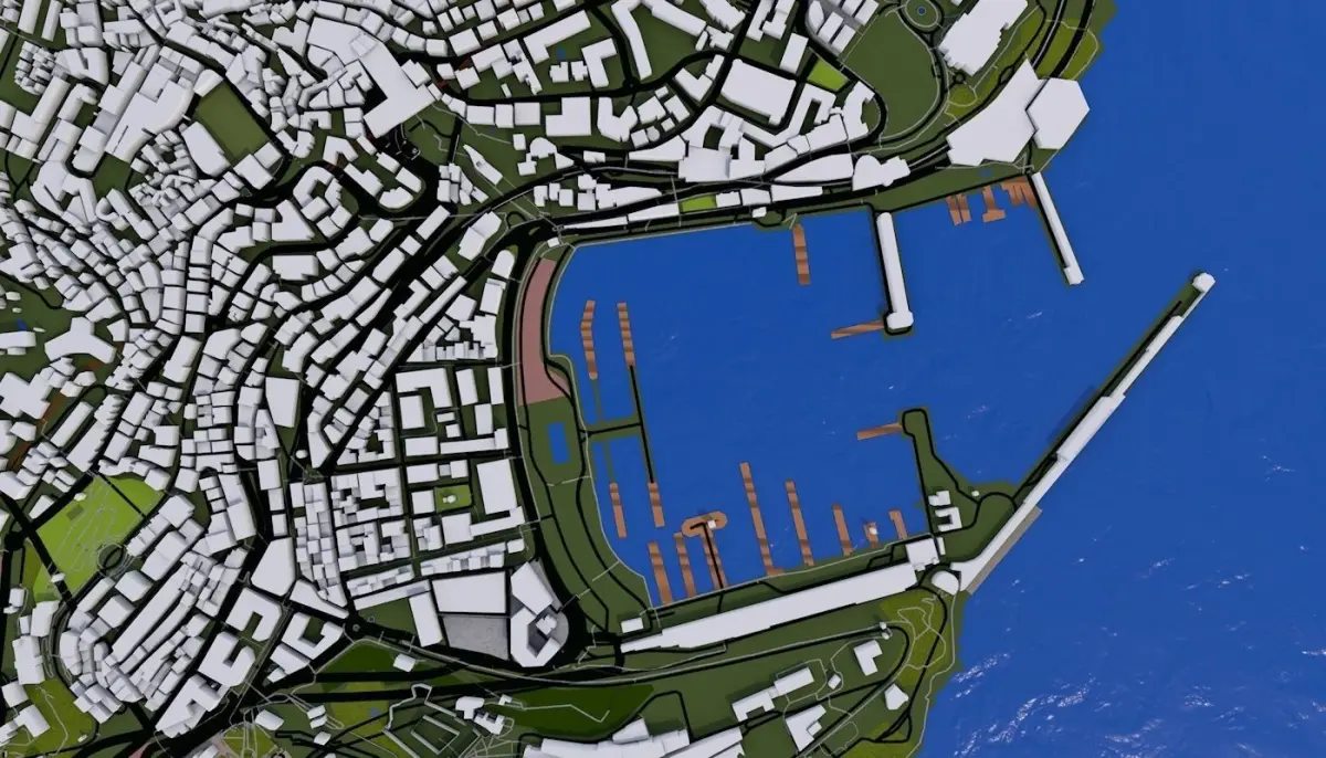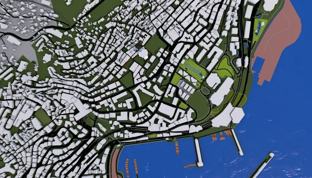 3D representation of Monoco City of France_Europe using 2019 map data. Roads, railway, land, water, buildings are made using real world data. Buildings are accurately placed and resembles the real world object up to some extend. Please note that random buildings (varying height) are added to those area where real world data is not available.