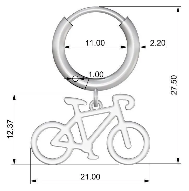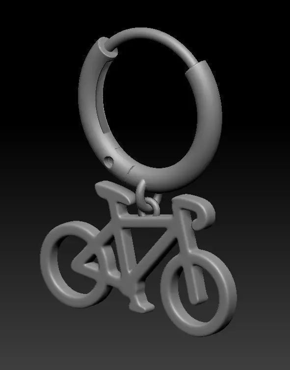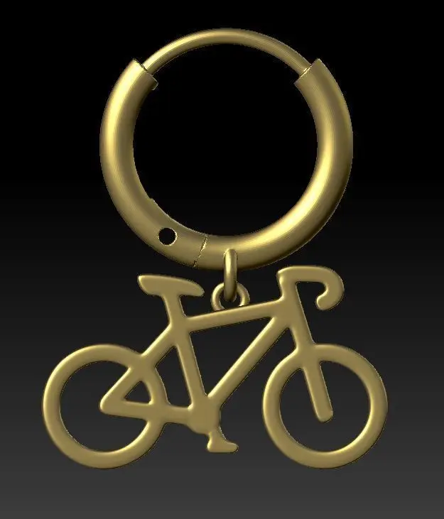 3D model of a monoearring with bicycle in 3DM (Rhino 5), STL, OBJ formats. Model is ready for printing. Weight 14k gold: ~3.3 g. Weight silver: ~2.6 g. The model consists of 3 parts: bicycle and ring with latch.