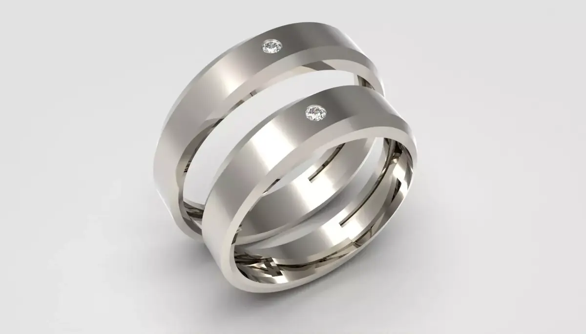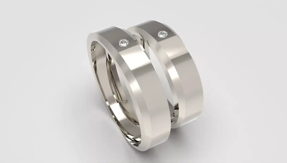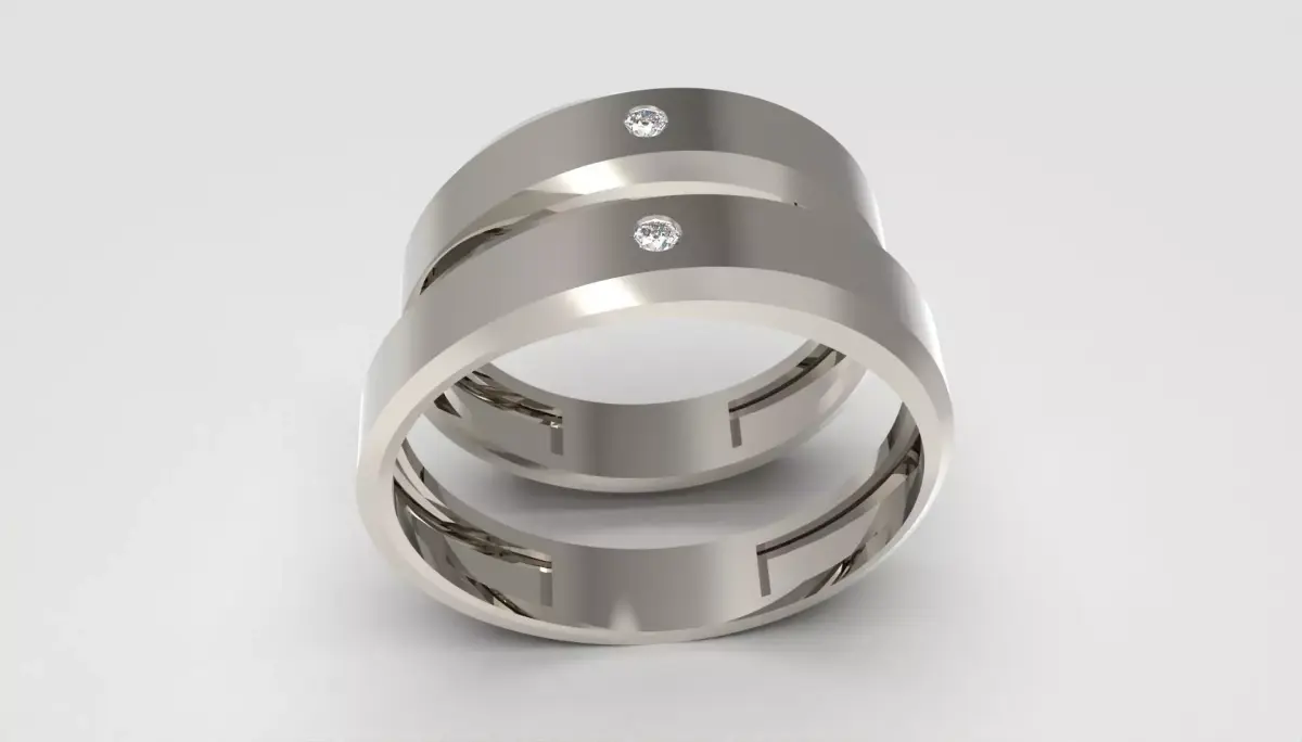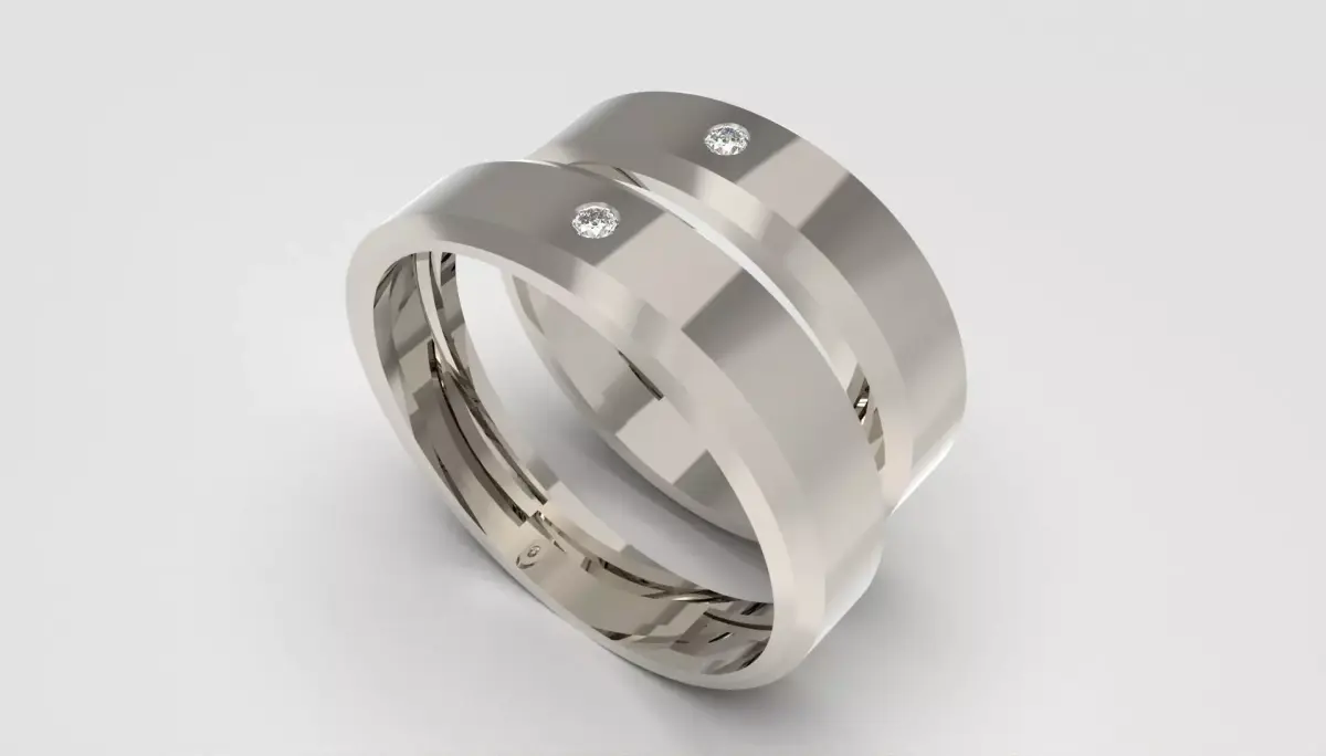 This wedding ring set highlights a refined minimalistic design defined by smooth curvature, clean surfaces, and a continuous split-line motif.Each band features a single precision-cut round diamond, tension-set within the metal to emphasize purity, symmetry, and modern elegance.The reflective metal shader, controlled specular highlights, and physically accurate light behavior showcase exceptional rendering quality.From perfect topology and subtle bevels to photorealistic material mapping, every detail demonstrates the harmony between digital craftsmanship and contemporary jewelry aesthetics—creating a timeless symbol of unity for modern couples.Men's ring size: 62 EuroWomen's ring size: 54 EuroFor any edit or revision: +447301387795 or elpouriapaypal@gmail.com