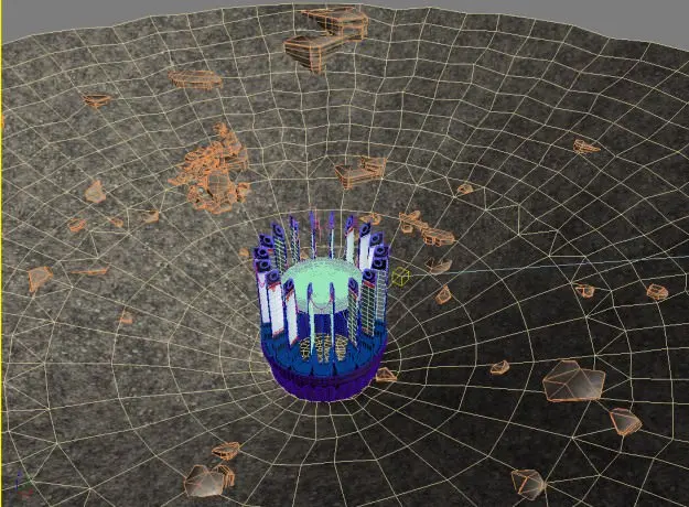 A curious self-healing surface resembling bacterias breeding on the monolith surface was discovered by pelting the structure with a sample gun. The surface seems to ingeniously feed the so-called upper crust bacterias that quickly restructured themselves over whatever hole appearing in the surface. The entire structure seems to have been deposed there in one piece, as a needle piercing the planetary shell. Rock surface analysis gives suspicion that the crater containing the artefact was created by a nuclear strike specifically for the probe. Everybody agrees that the central disc is probably the accumulator of whatever material transformations that happen within. That the disc is detachable and removable by whichever Creator that will eventually demand the results. Although some researchers maintain that the probe has been in standby mode for the last 3000 years.Scanning of the micrometeoritical surface erosion give some evidence for that. But it's all but deductions from high resolution multiband photos. No human expedition has yet dared to mount the trek even to the nearest star, let alone Monolithion.