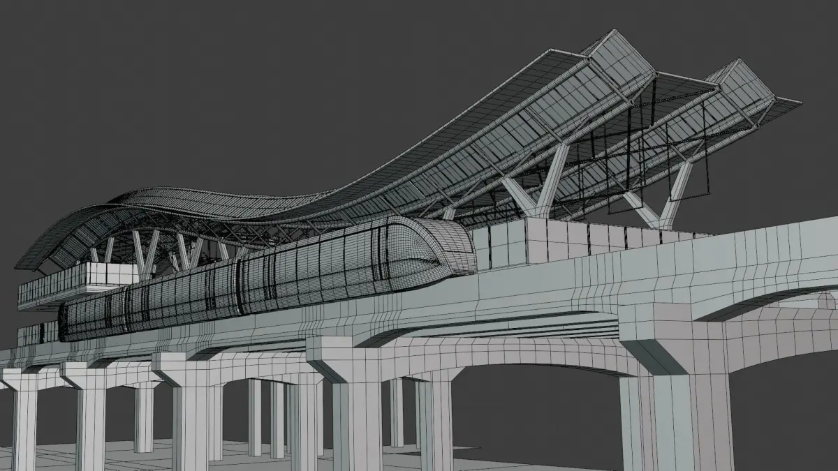- This is 3D model of monorail station with train.