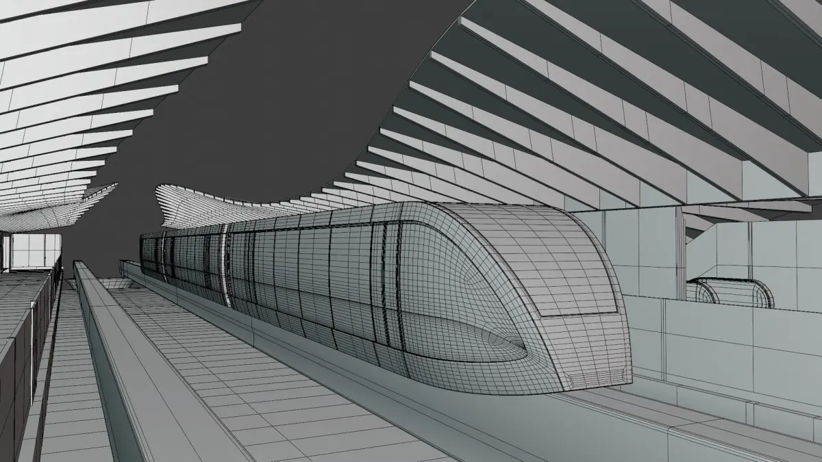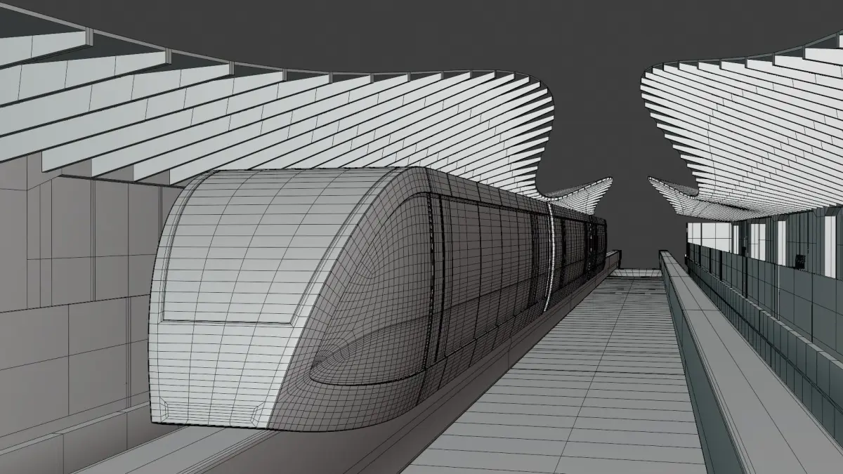 - This is 3D model of elevated monorail station with train.