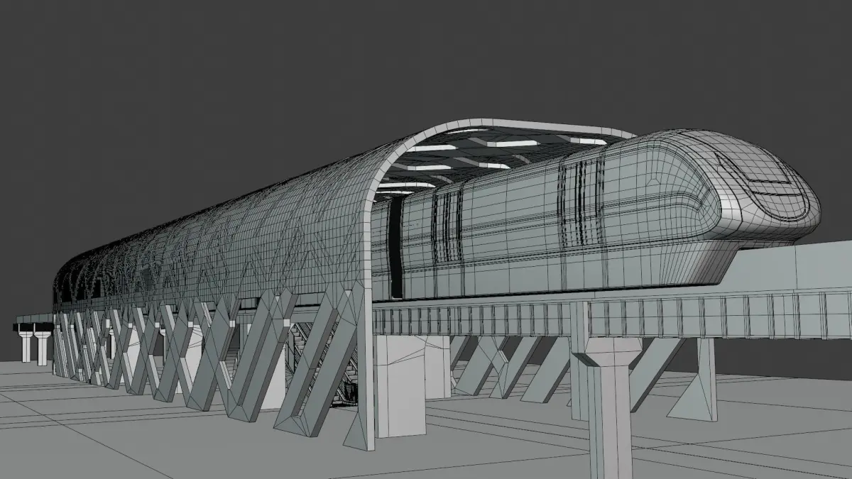 - This is 3D model of elevated monorail station with train.