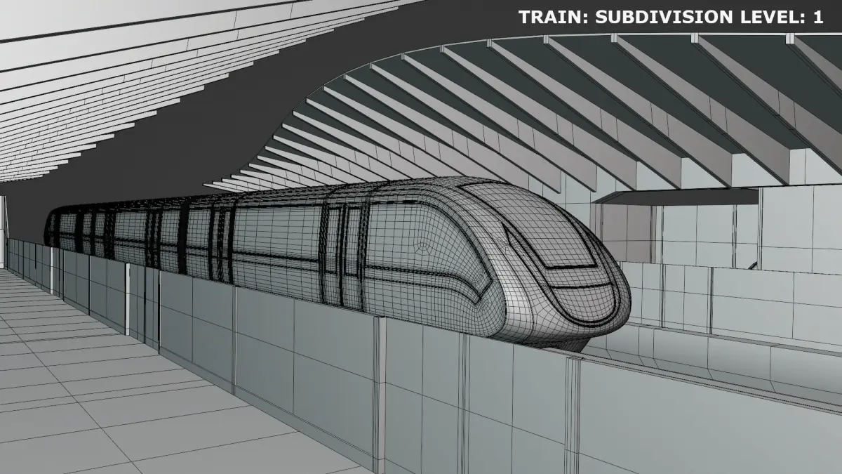 - Train model is ready for subdivision and was rendered with subdivision level 2.