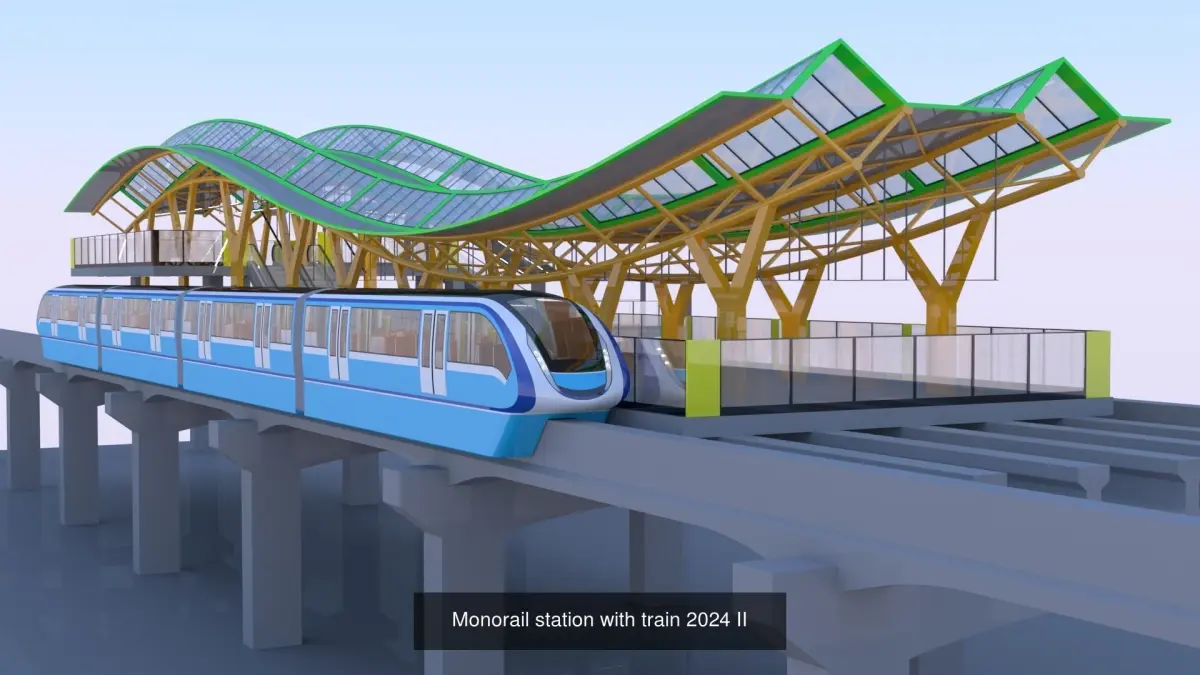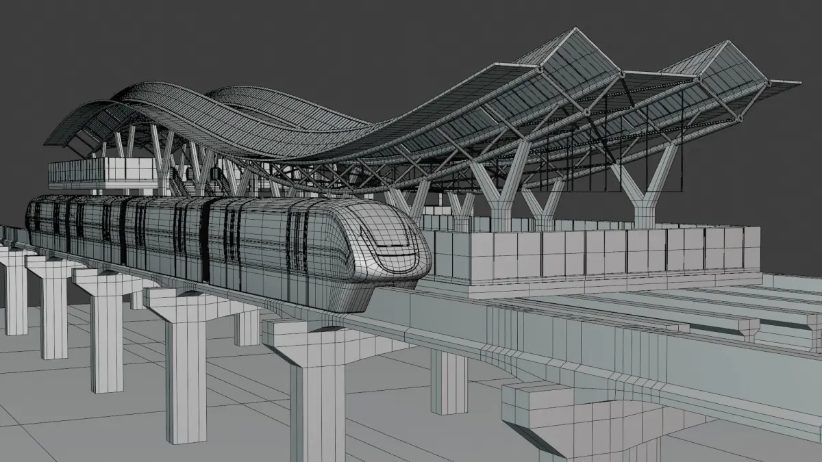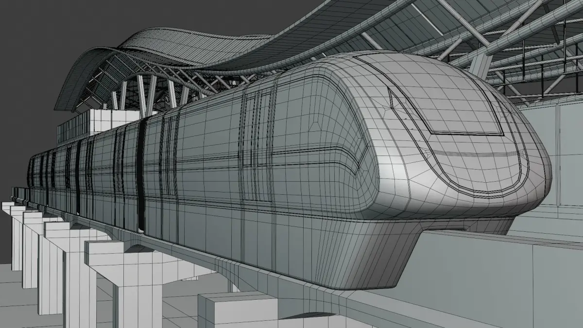 - These are 3D models of monorail stations with train.